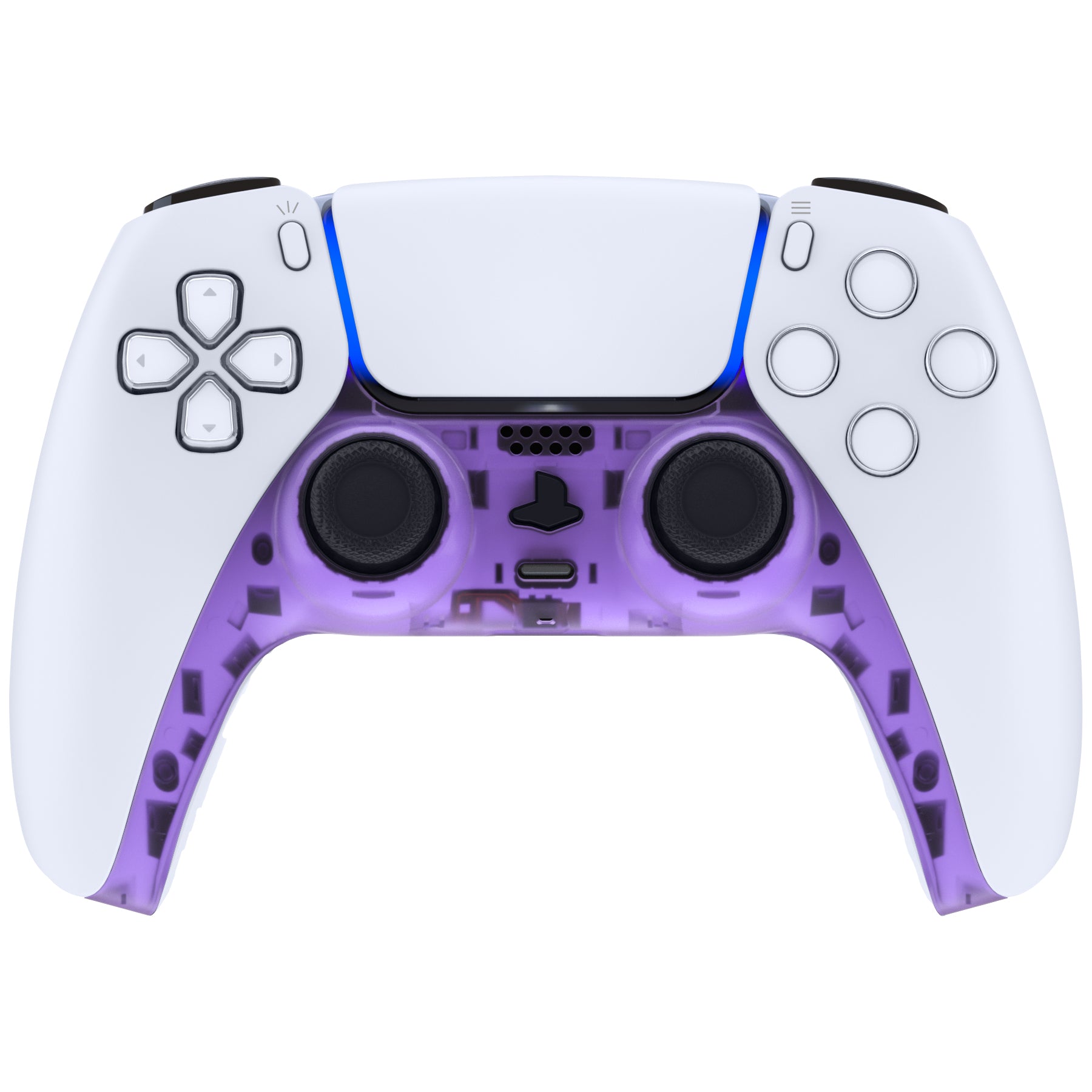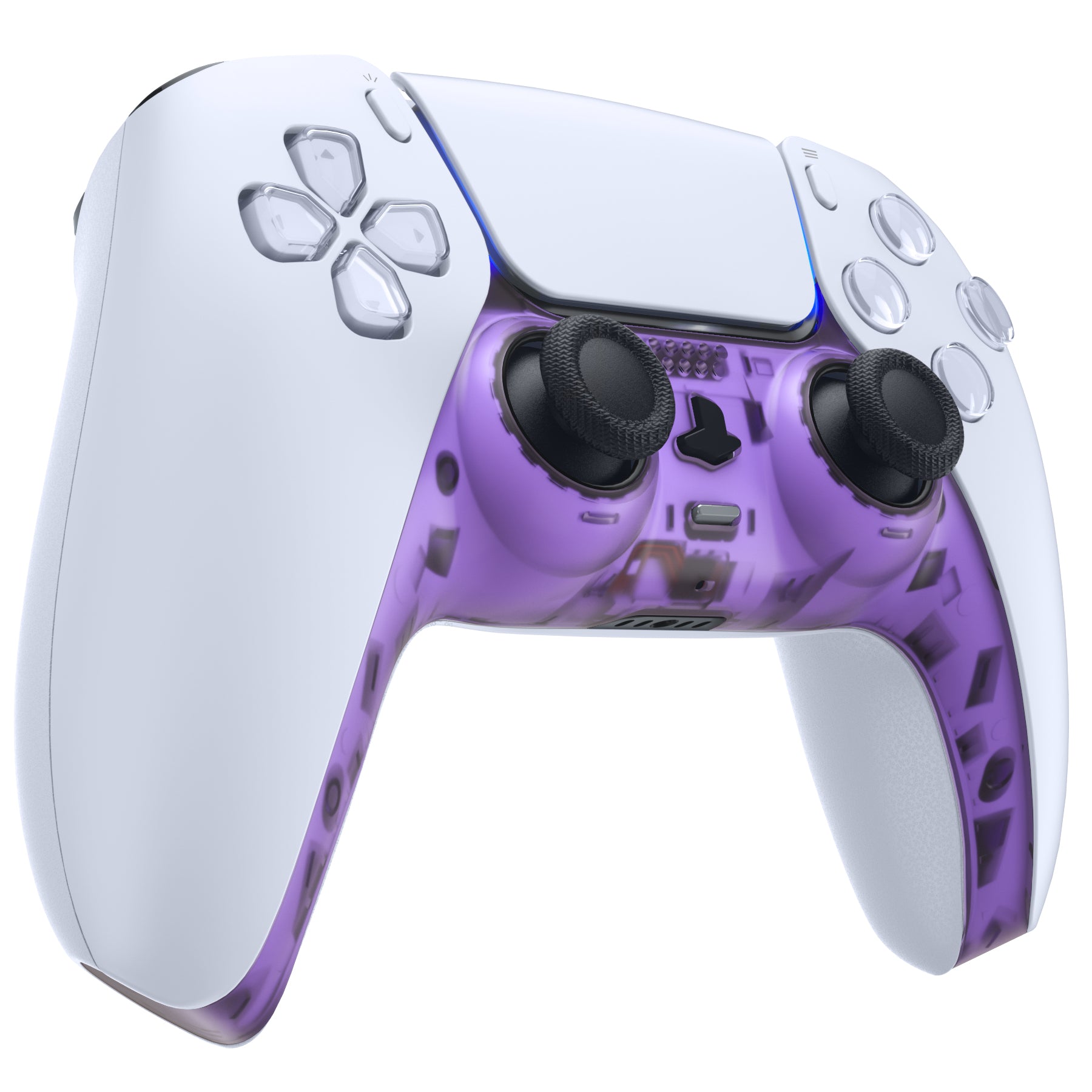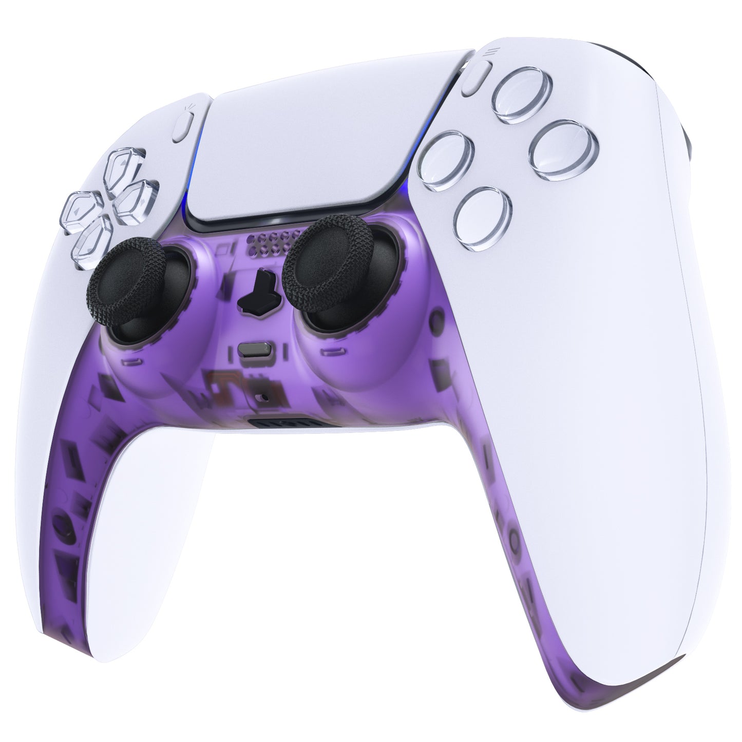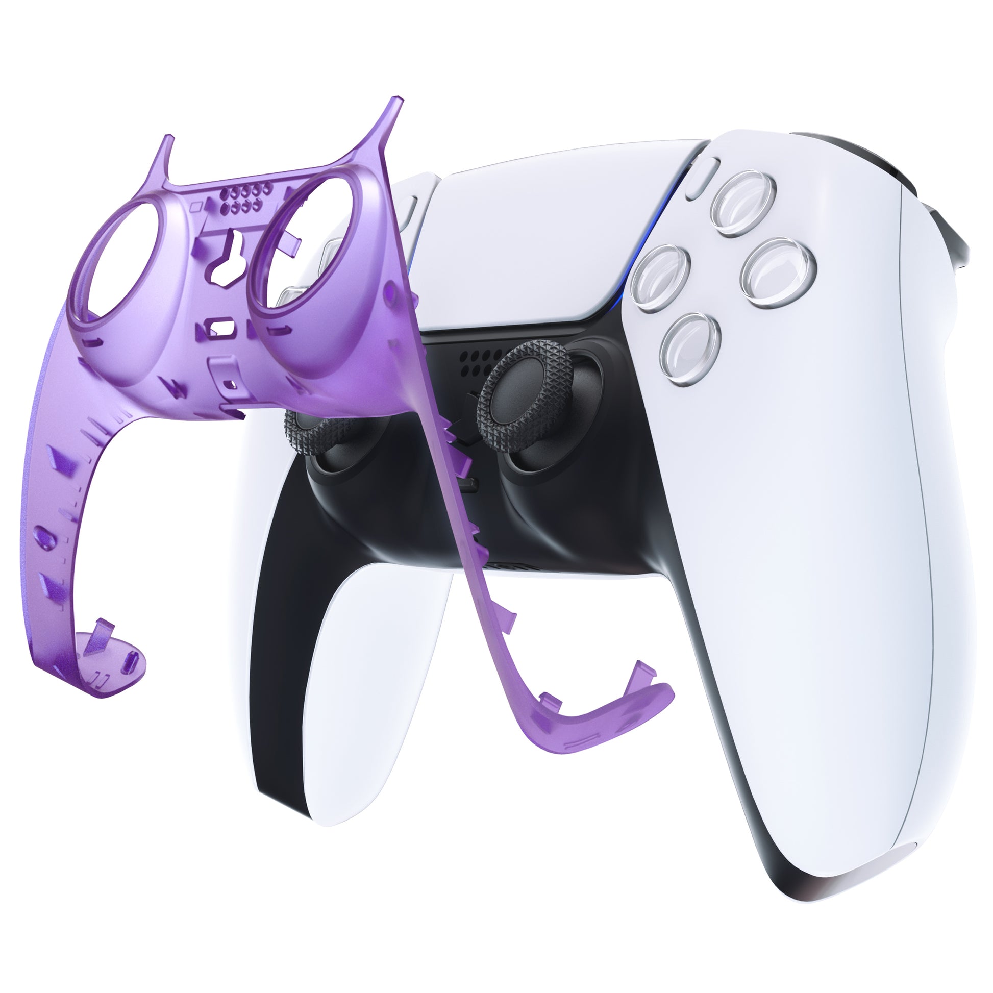 eXtremeRate Replacement Decorative Trim Shell with Accent Rings Compatible with PS5 Controller BDM-010/020/030/040/050 - Clear Atomic Purple