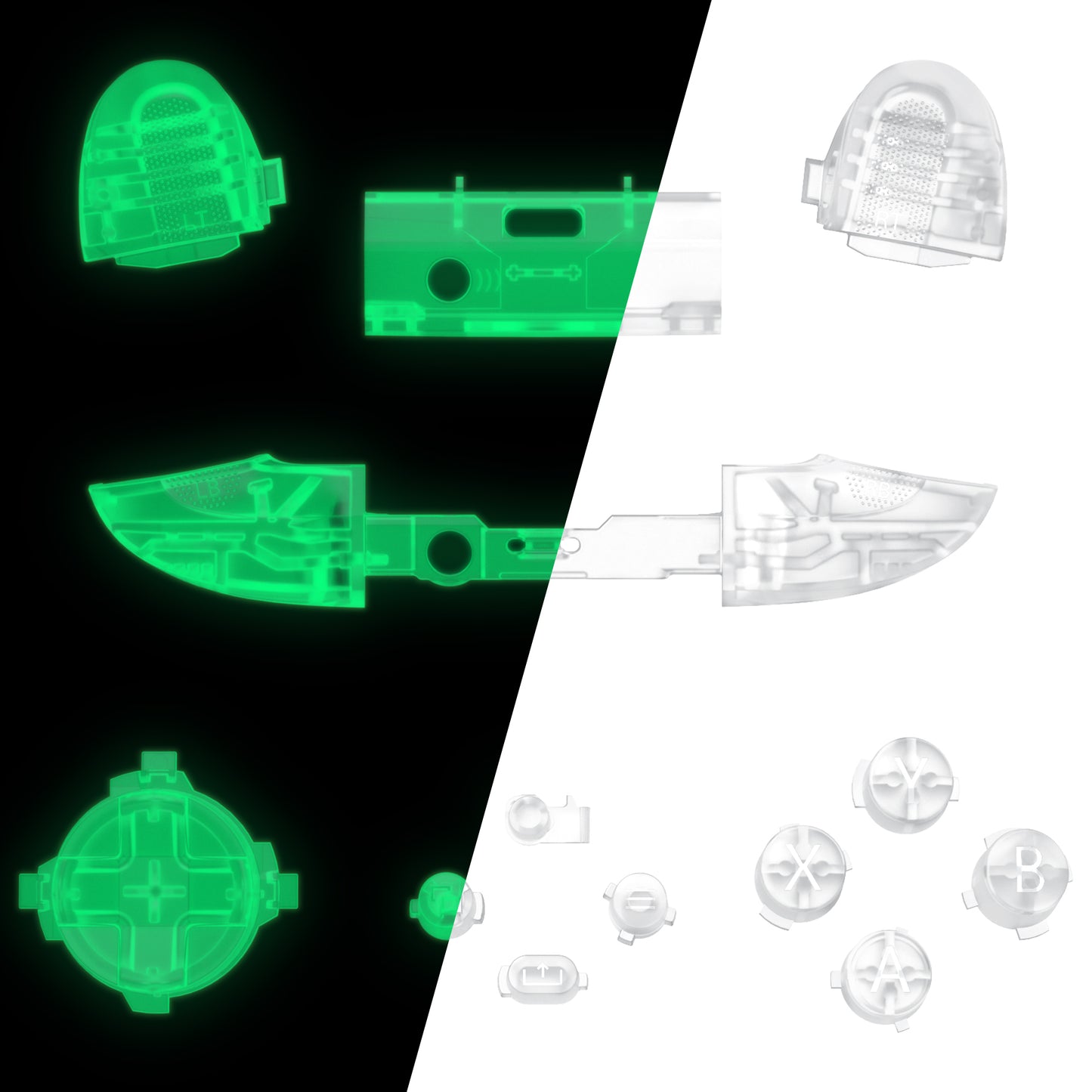 eXtremeRate Replacement Full Set Buttons for Xbox Series X & S Controller - Glow in Dark - Green