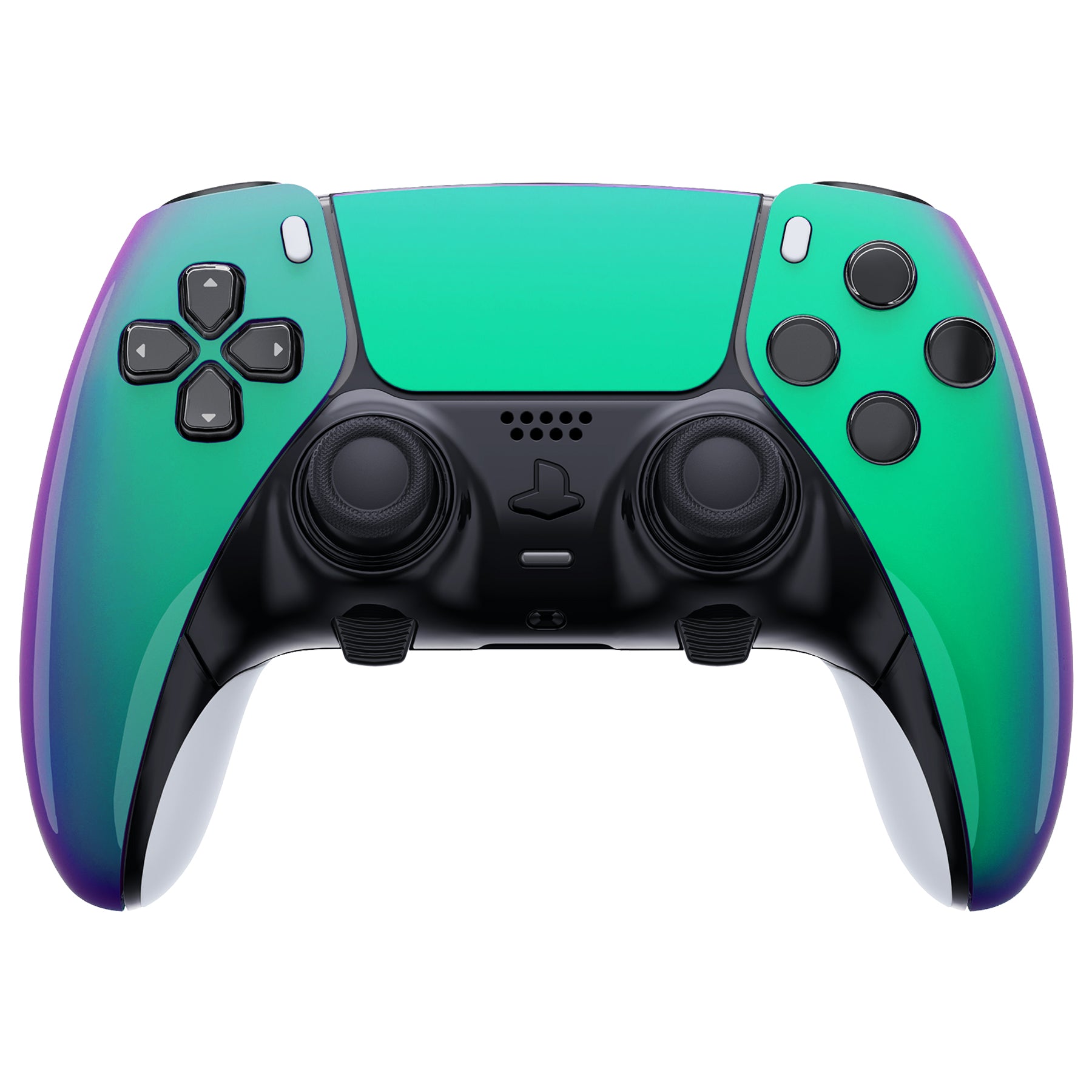 eXtremeRate Replacement Left Right Front Housing Shell with Touchpad Compatible with PS5 Edge Controller - Chameleon Green Purple