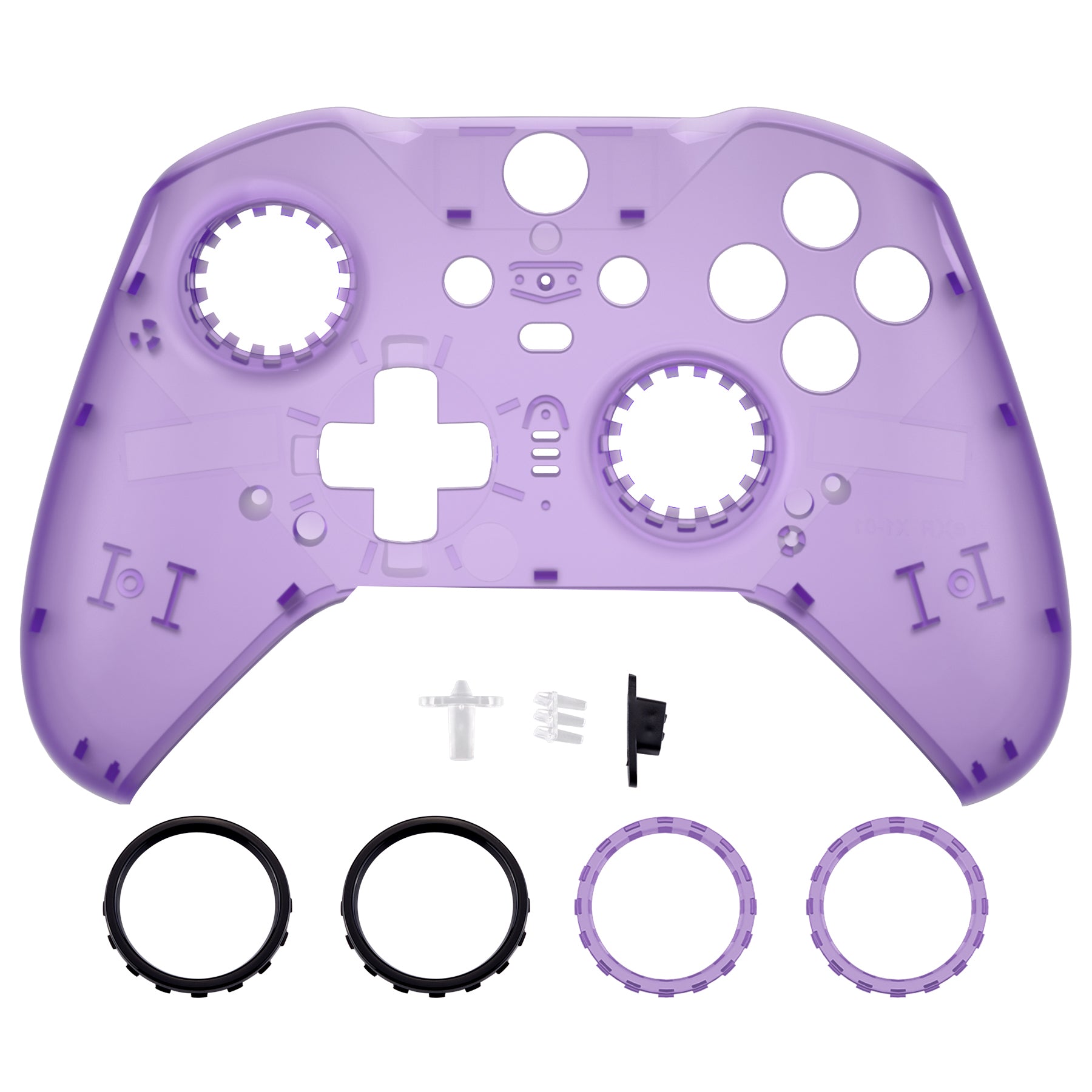 eXtremeRate Replacement Front Housing Shell Case with Accent Rings for Xbox One Elite Series 2 & Elite 2 Core Controller (Model 1797) - Clear Atomic Purple