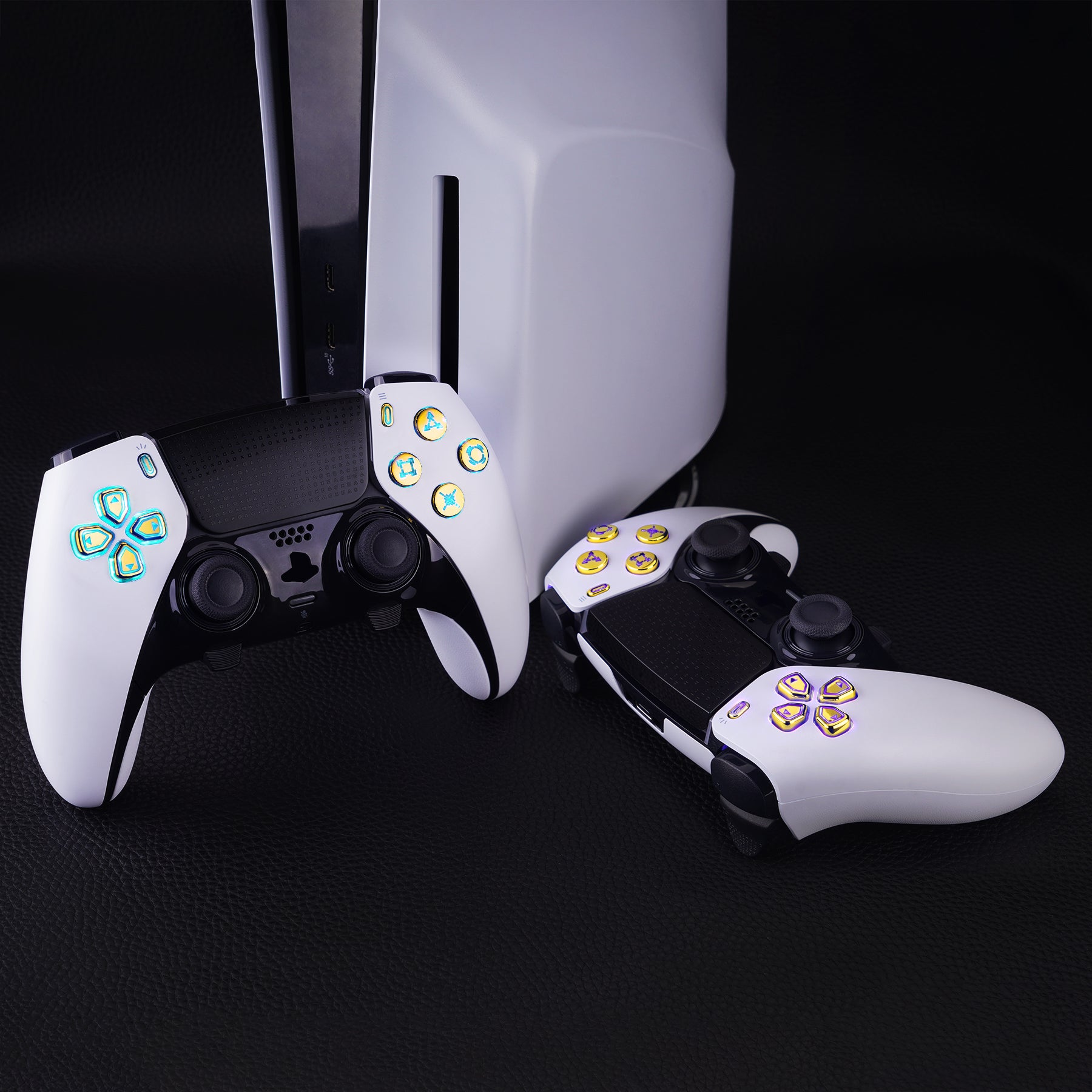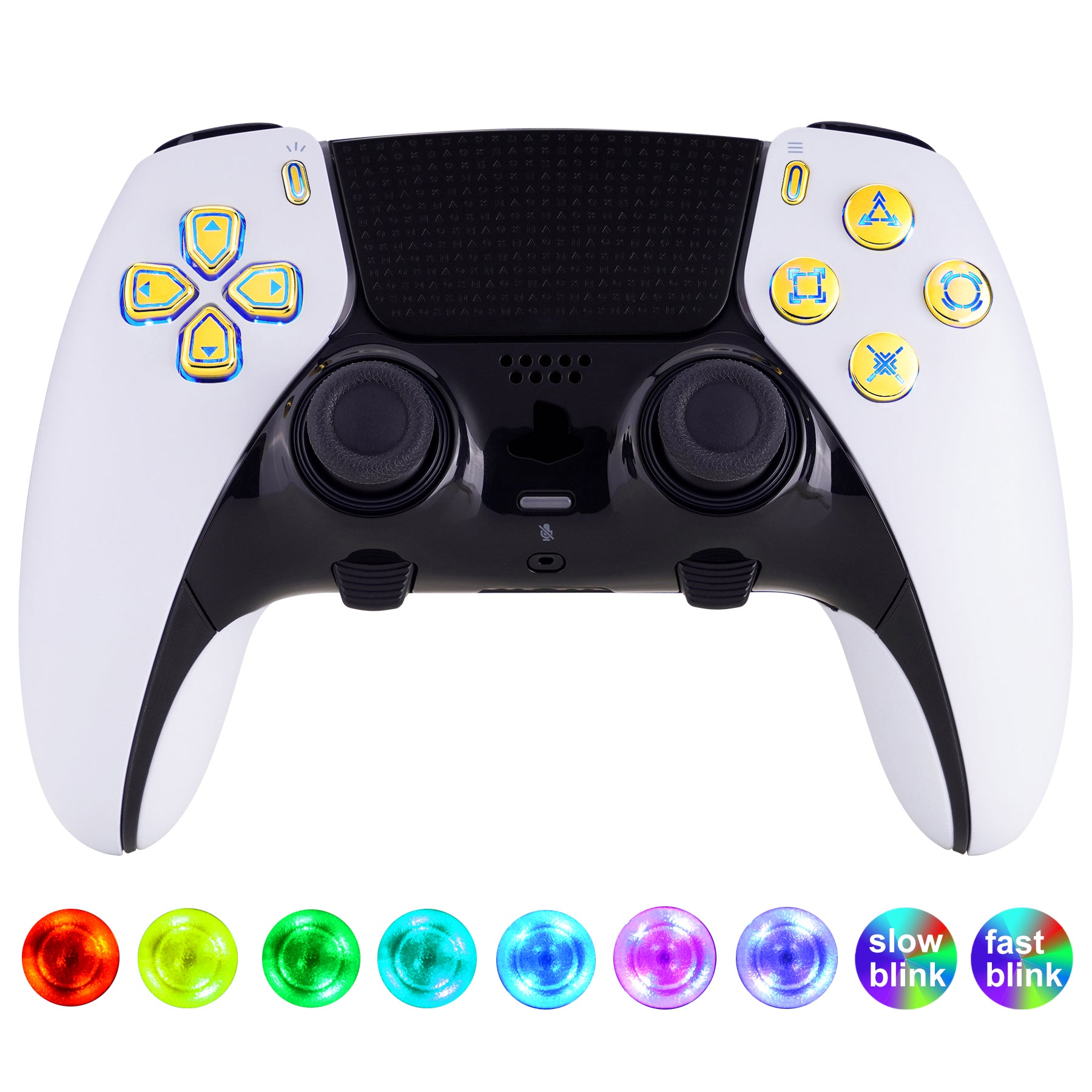 eXtremeRate Multi-Colors Luminated Buttons D&F LED Kit for PS5 Edge Controller - Chrome Gold Classical Symbols Buttons