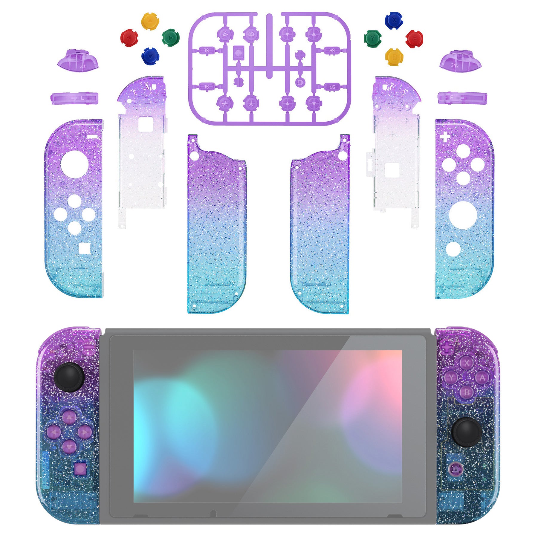eXtremeRate Replacement Full Set Shell Case with Buttons for Joycon of NS Switch - Glitter Gradient Translucent Bluebell & Blue