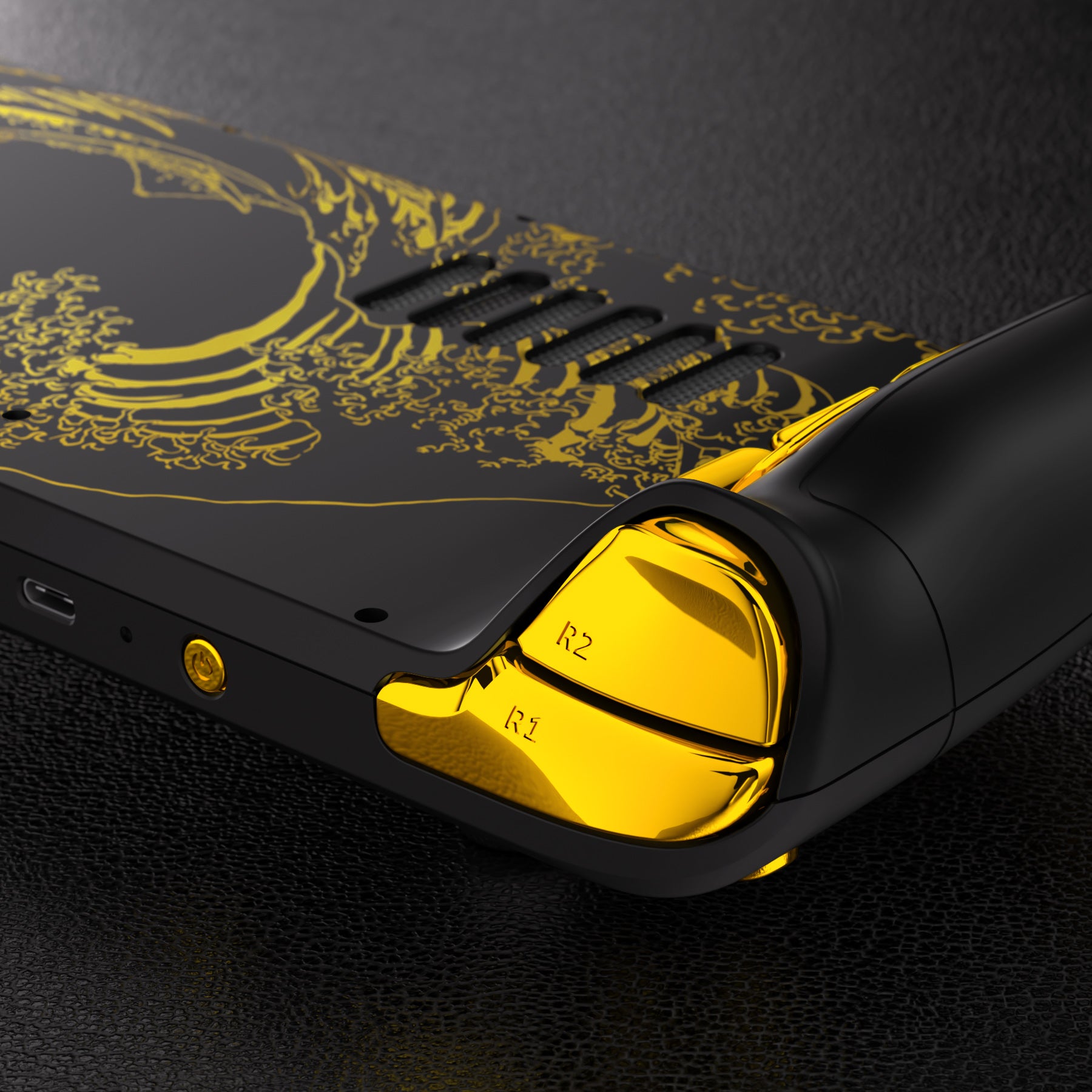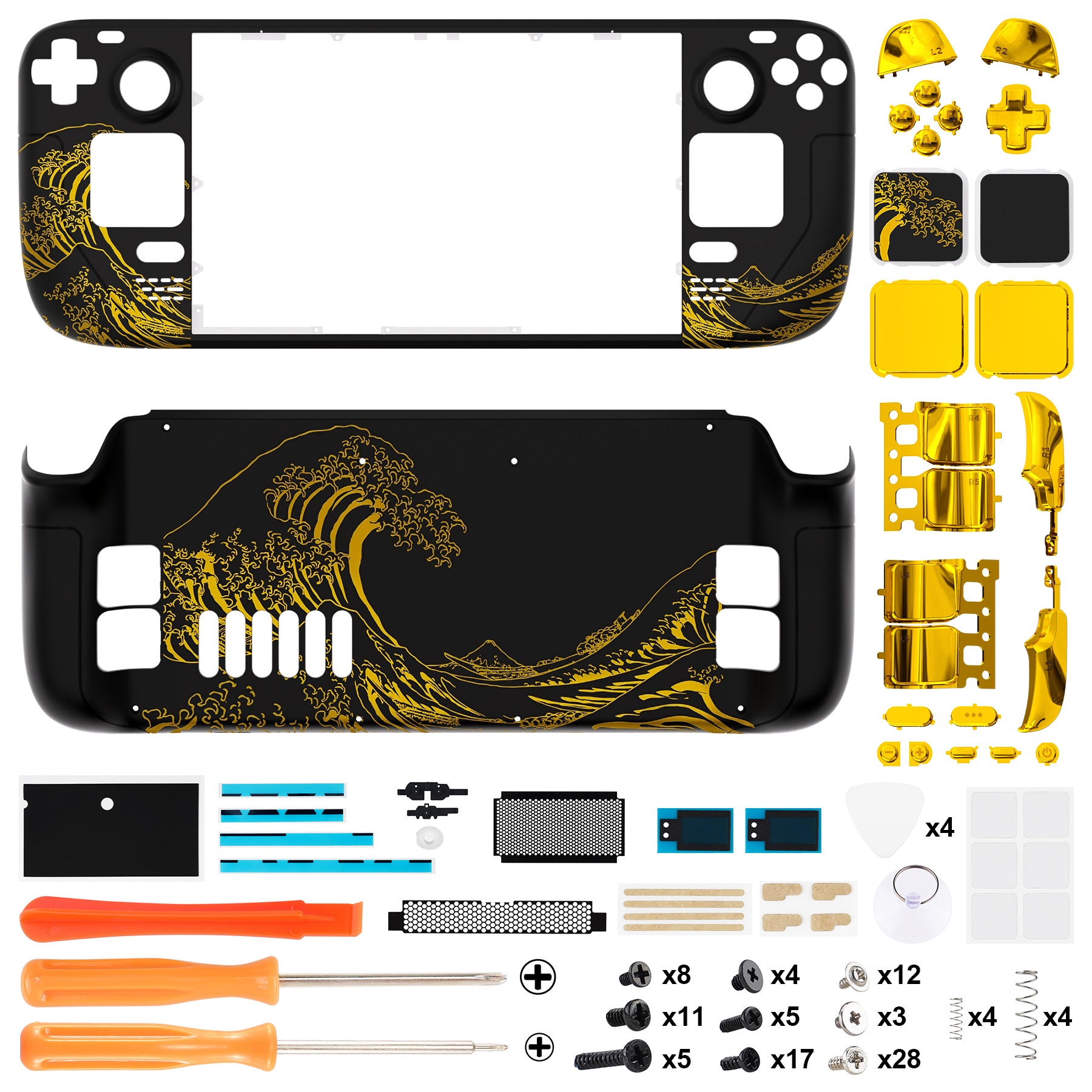 eXtremeRate Custom Full Set Shell with Buttons for Steam Deck LCD - The Great GOLDEN Wave Off Kanagawa - Black