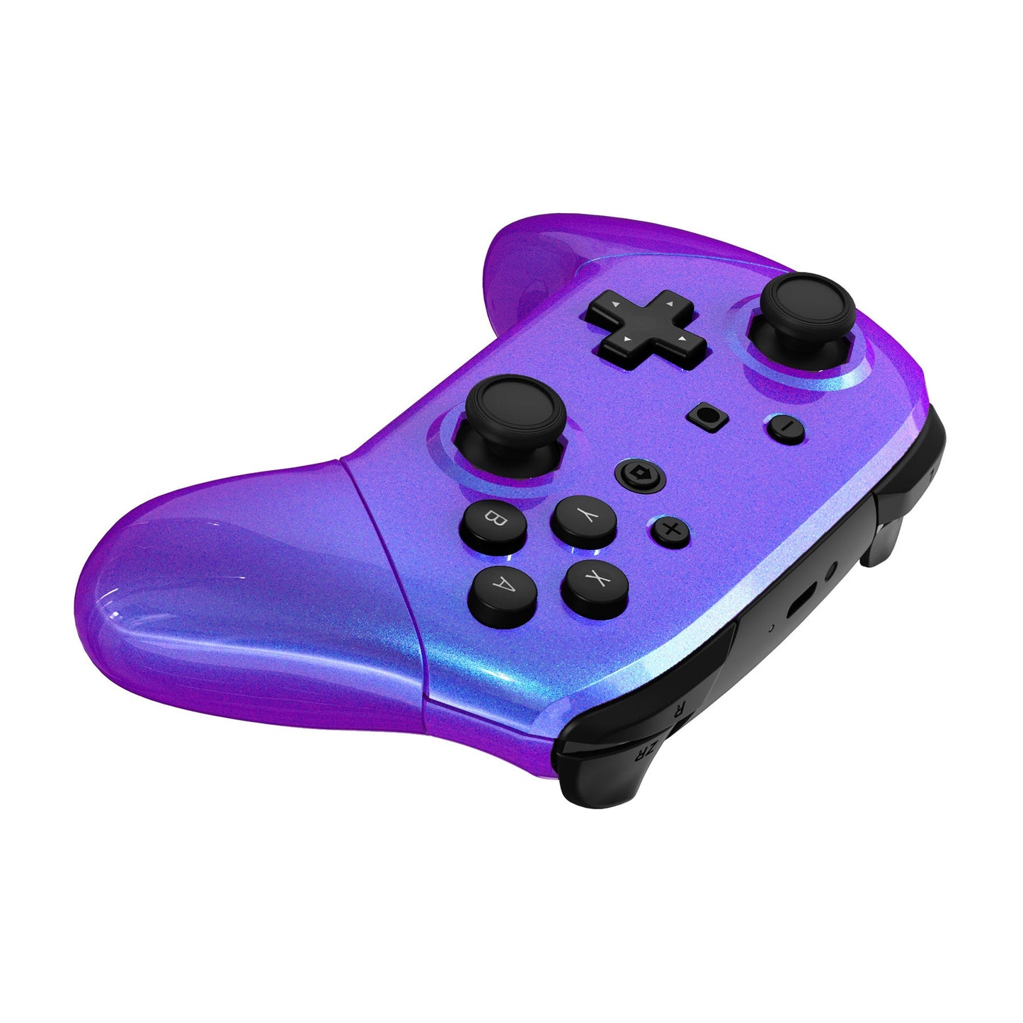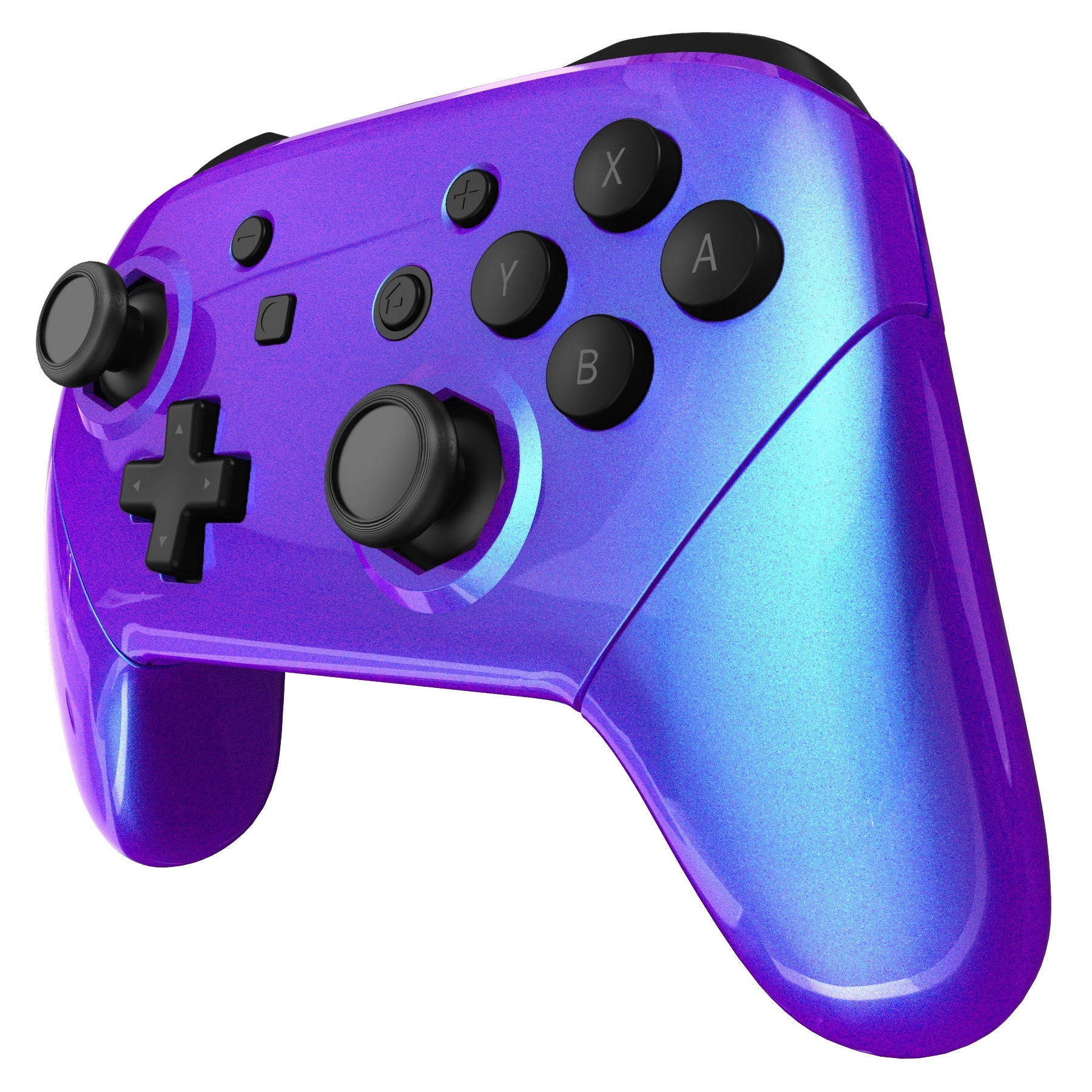 eXtremeRate Octagonal Gated Sticks Design Replacement Full Set Shell Faceplate Backplate Handles for Nintendo Switch Pro - Chameleon Purple Blue