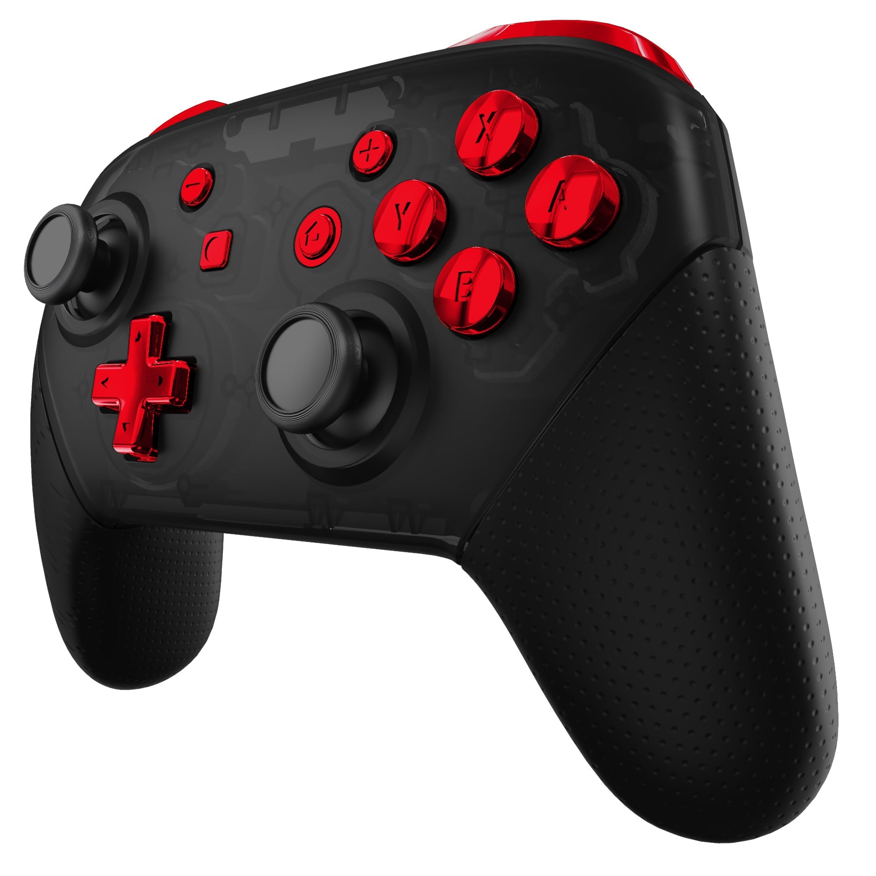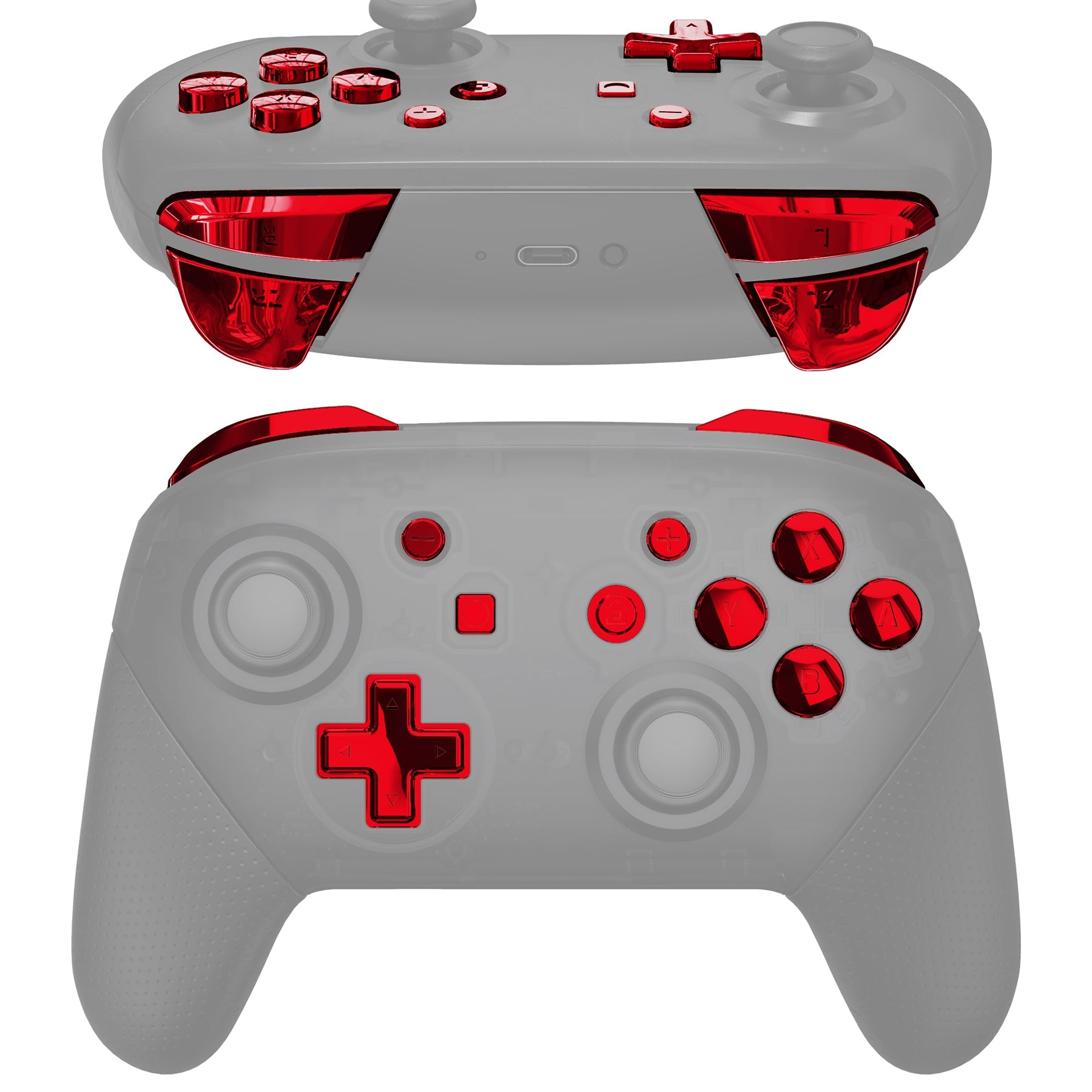 eXtremeRate DIY Replacement Full Set Buttons for Nintendo Switch Pro Controller - Chrome Red Glossy
