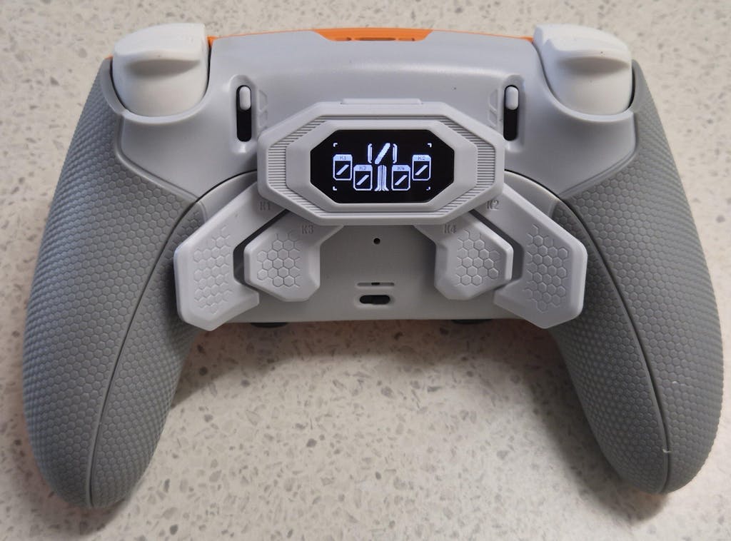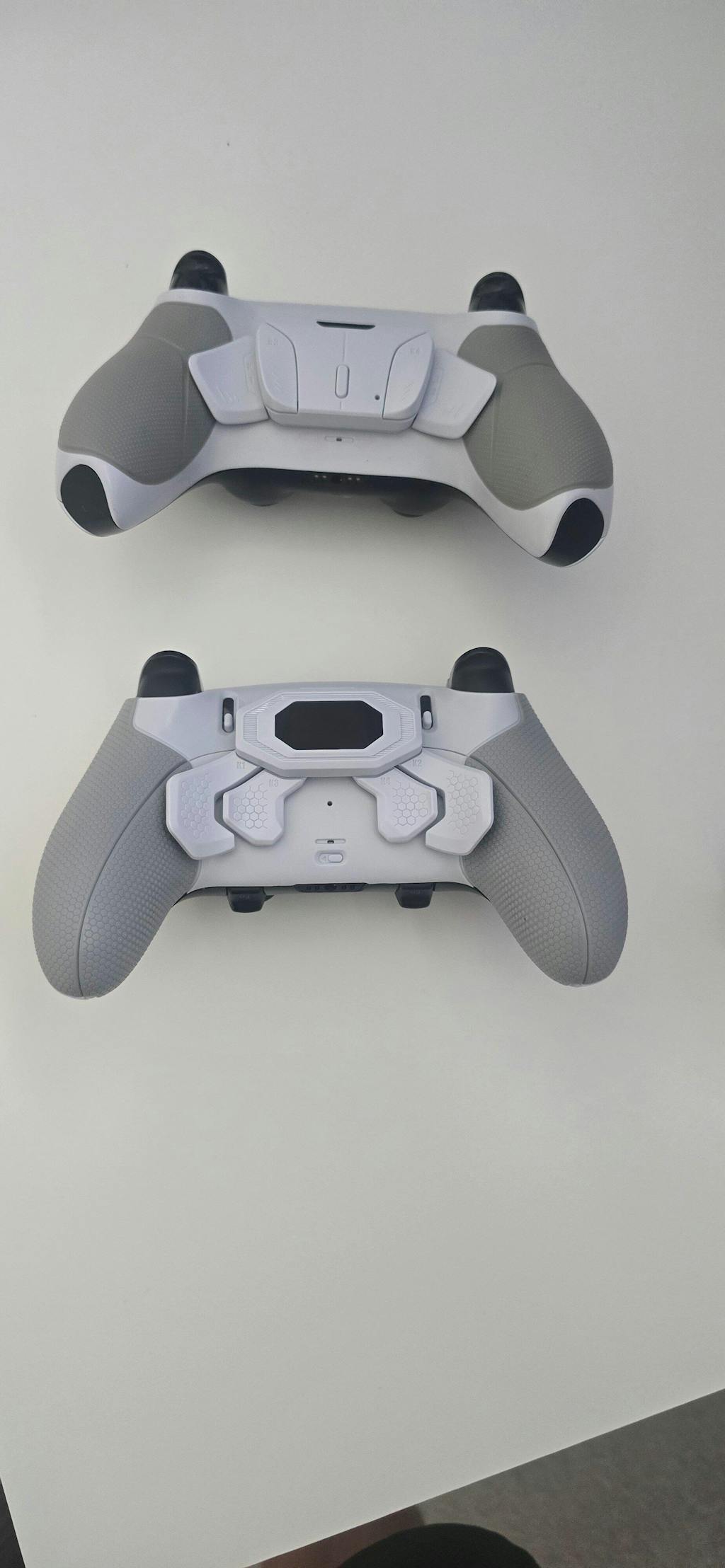 eXtremeRate BEYOND Back Paddles Kit with OLED Display & Redesigned Ergonomic Grips for PS5 Edge Controller - Rubberized White & Gray