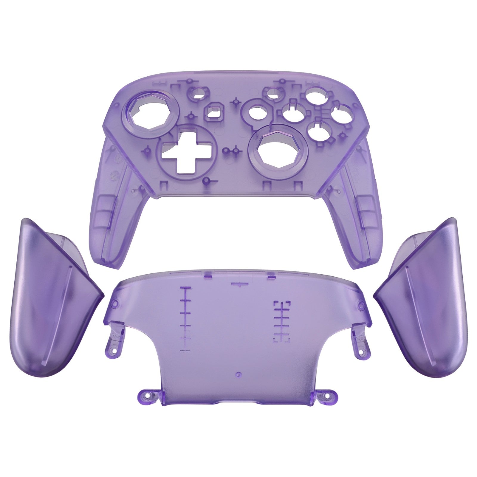 eXtremeRate Octagonal Gated Sticks Design Replacement Full Set Shell Faceplate Backplate Handles for Nintendo Switch Pro - Clear Atomic Purple