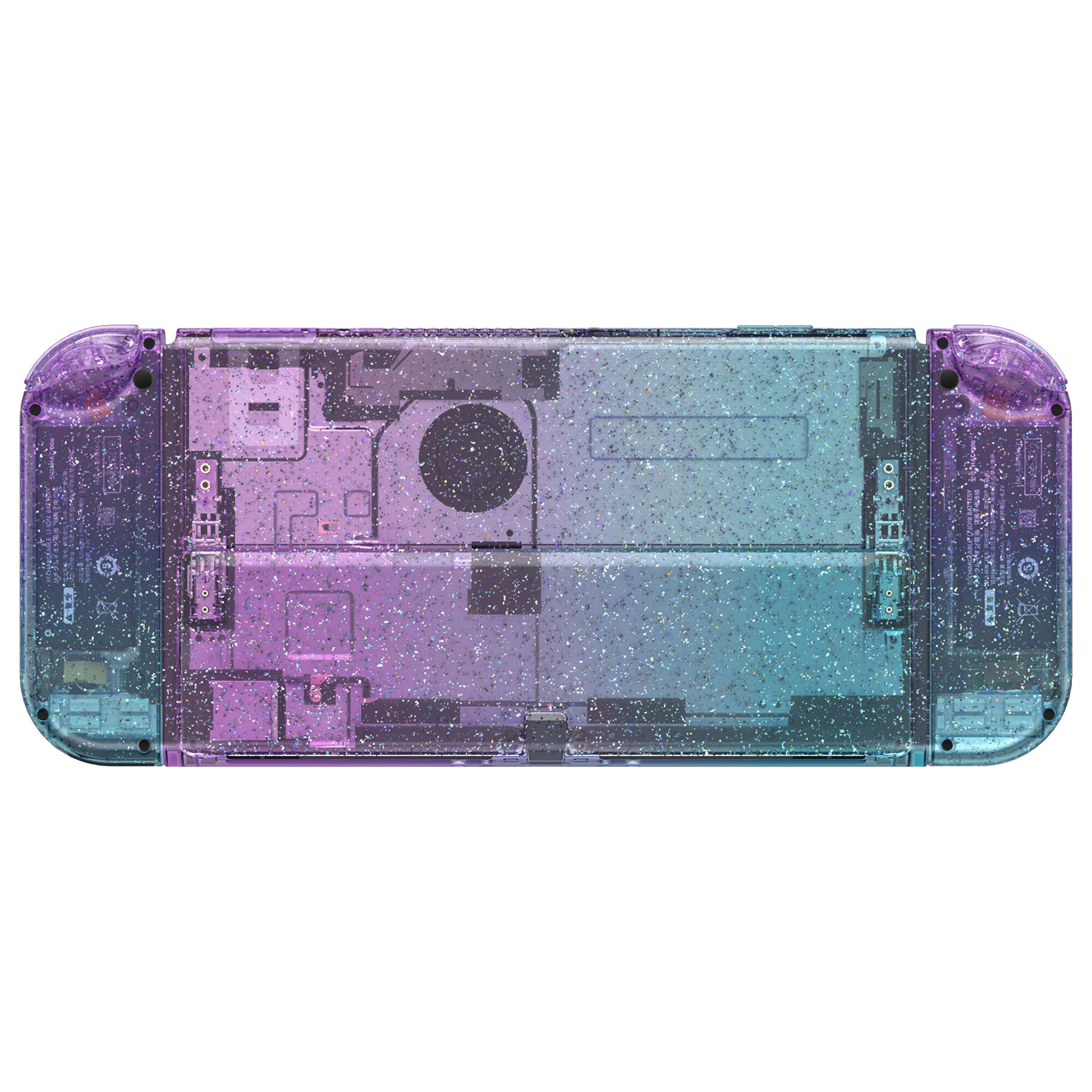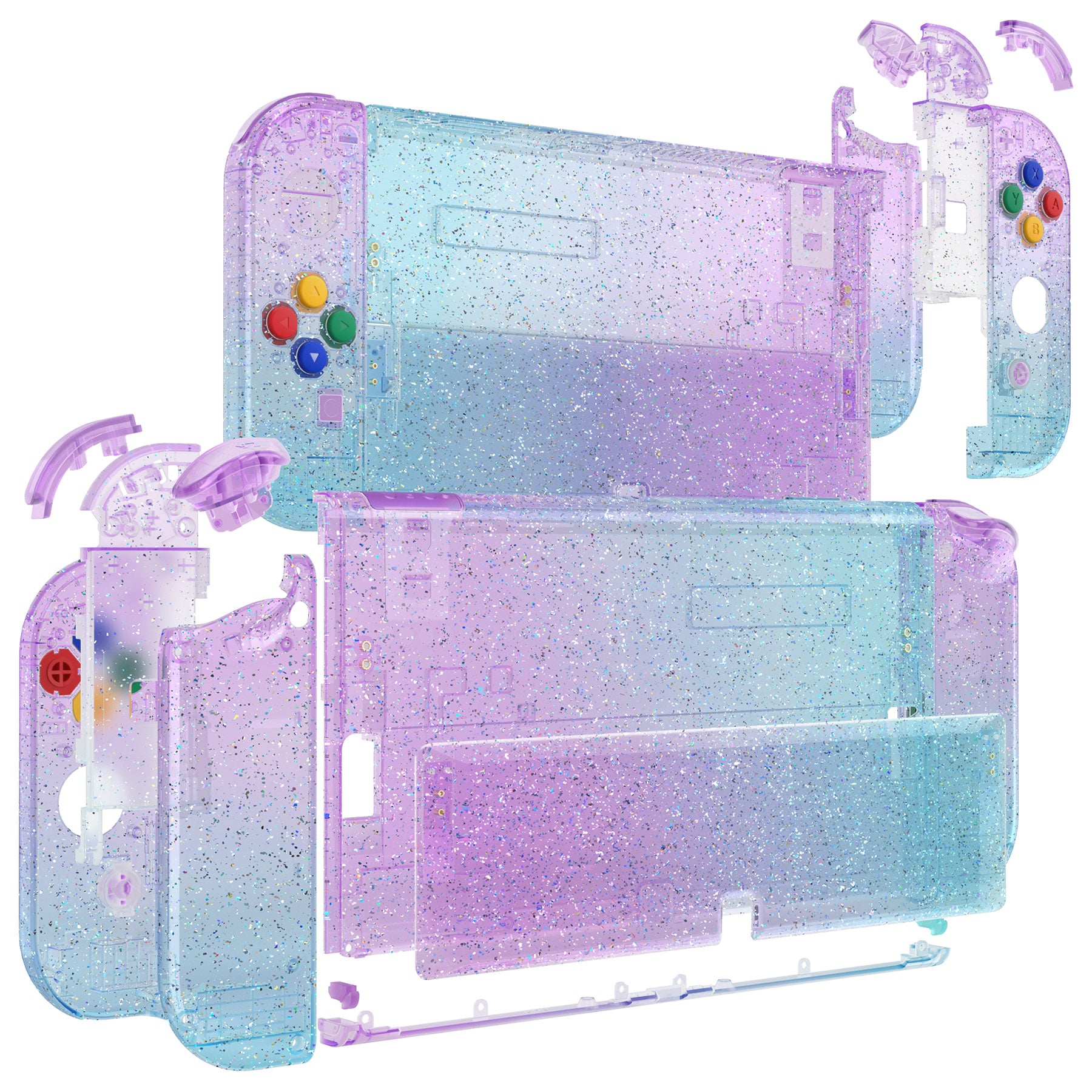 eXtremeRate Custom Replacement Full Set Shell with Buttons for Nintendo Switch OLED - Glitter Gradient Translucent Bluebell & Blue