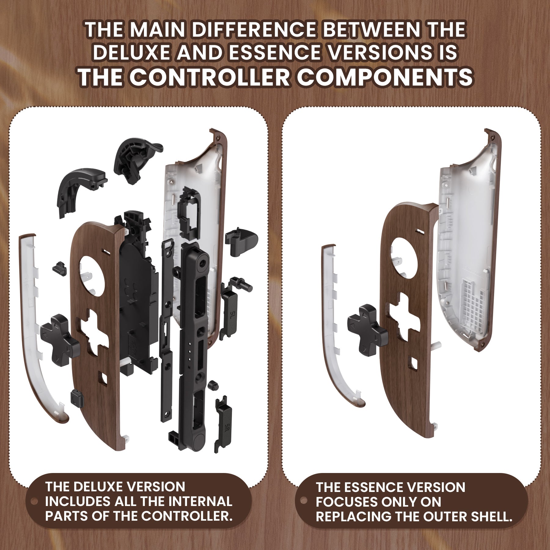 eXtremeRate D-Pad Version Replacement Full Set Shell Case with Buttons for Joycon 2 of Nintendo Switch 2 - Essence Version - Wood Grain