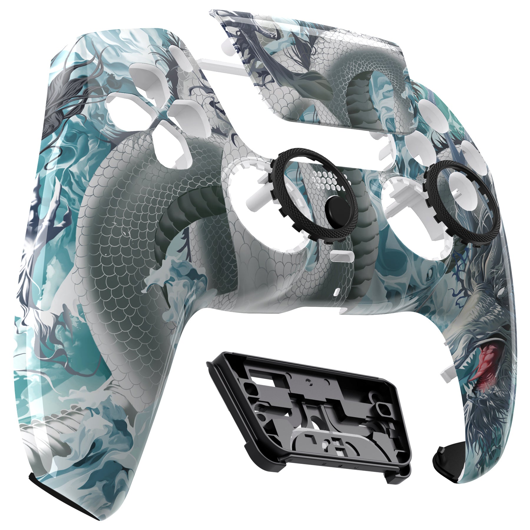 eXtremeRate LUNA Redesigned Replacement Front Shell with Touchpad Compatible with PS5 Controller BDM-010/020/030/040/050 - Jade Dragon - Cloud Dominator