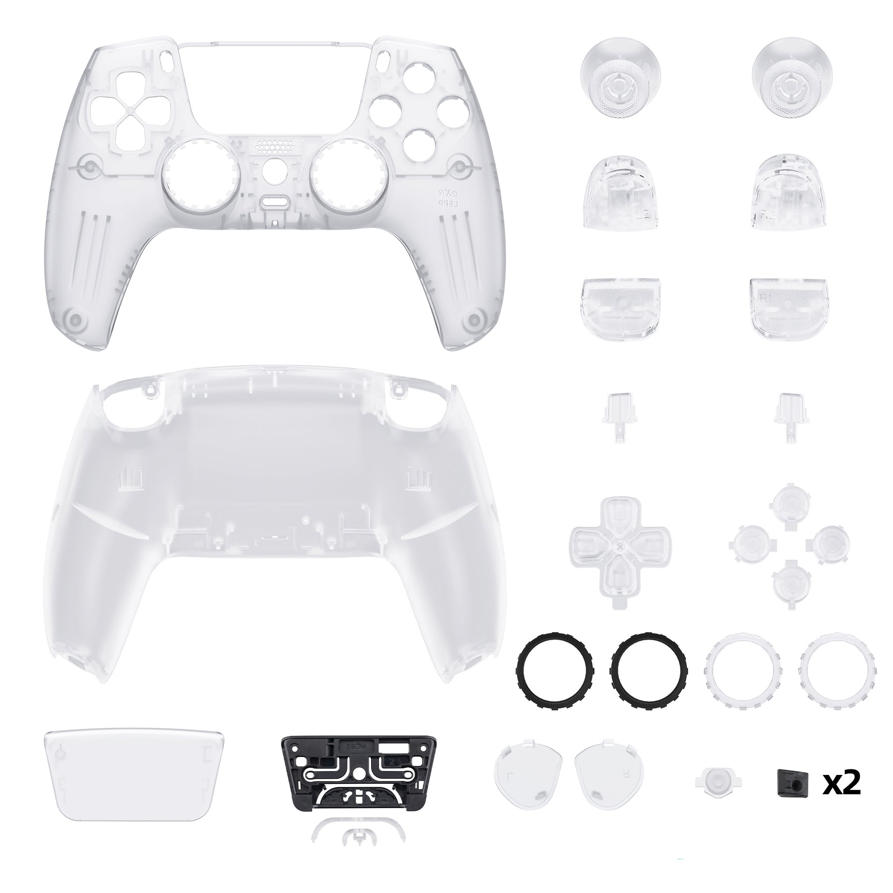 eXtremeRate LUNA Redesigned Replacement Full Set Shells with Buttons Compatible with PS5 Controller BDM-030/040/050 - Clear