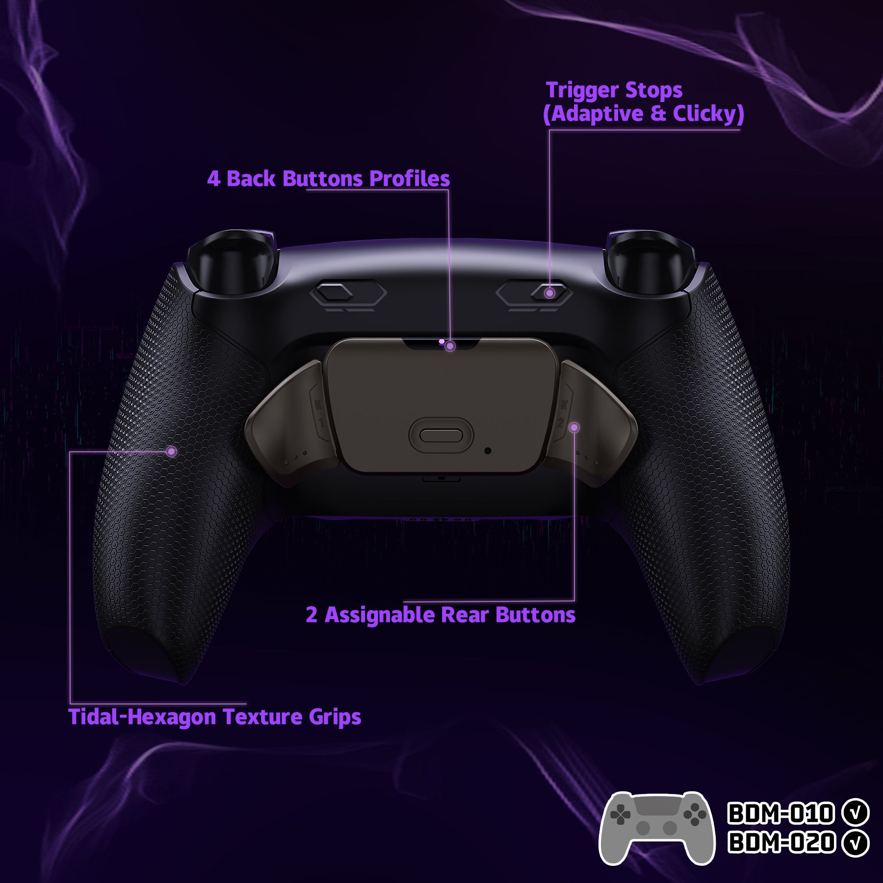 eXtremeRate Real Metal Buttons (RMB) Version RISE Plus MAX Back Paddles Kit with Clicky Trigger Stops & Rubberized Grip for PS5 Controller BDM-010/020 - Black