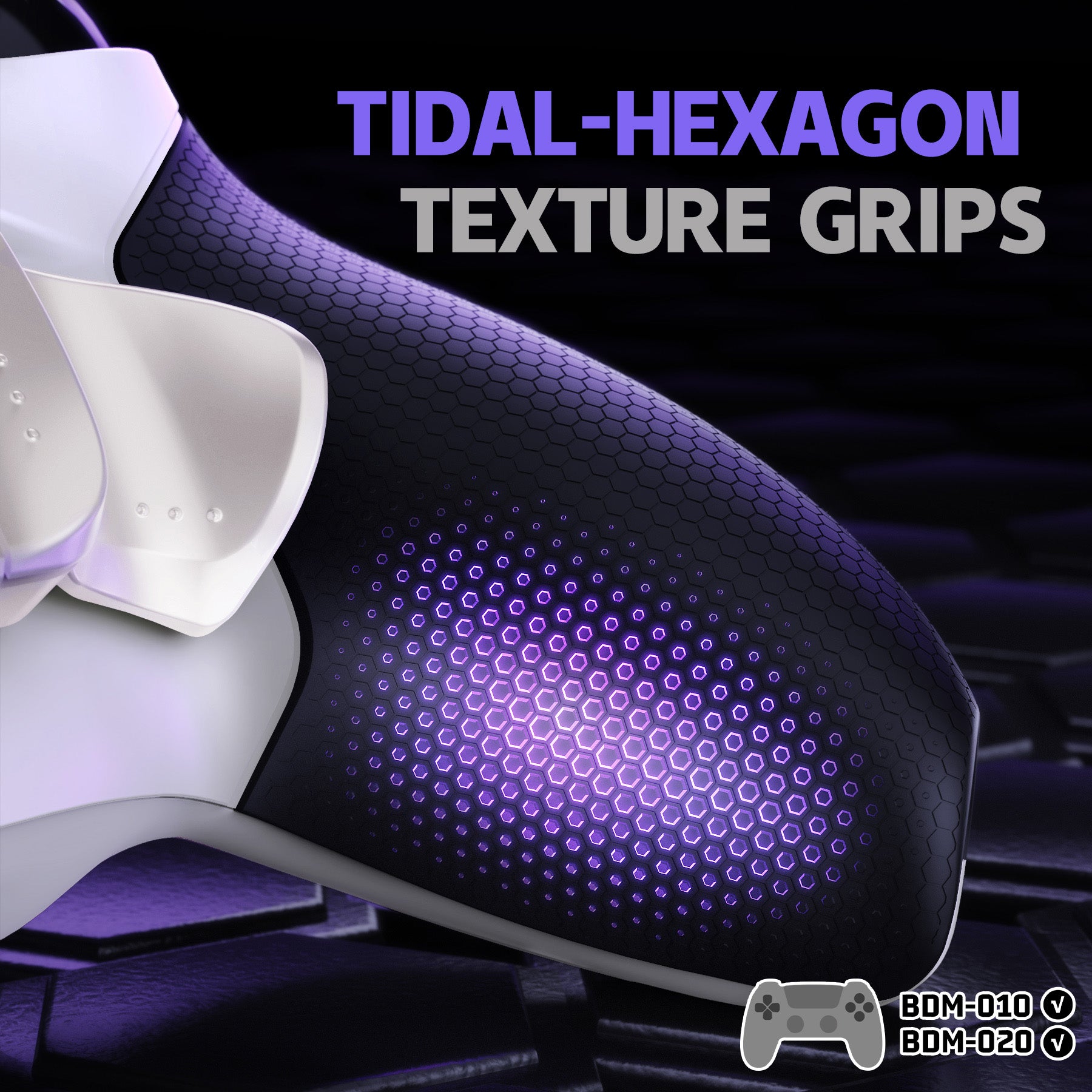 eXtremeRate Real Metal Buttons (RMB) Version RISE4 Plus MAX Back Paddles Kit with Clicky Trigger Stops & Rubberized Grip for PS5 Controller BDM-010/020 - White Black - Silver