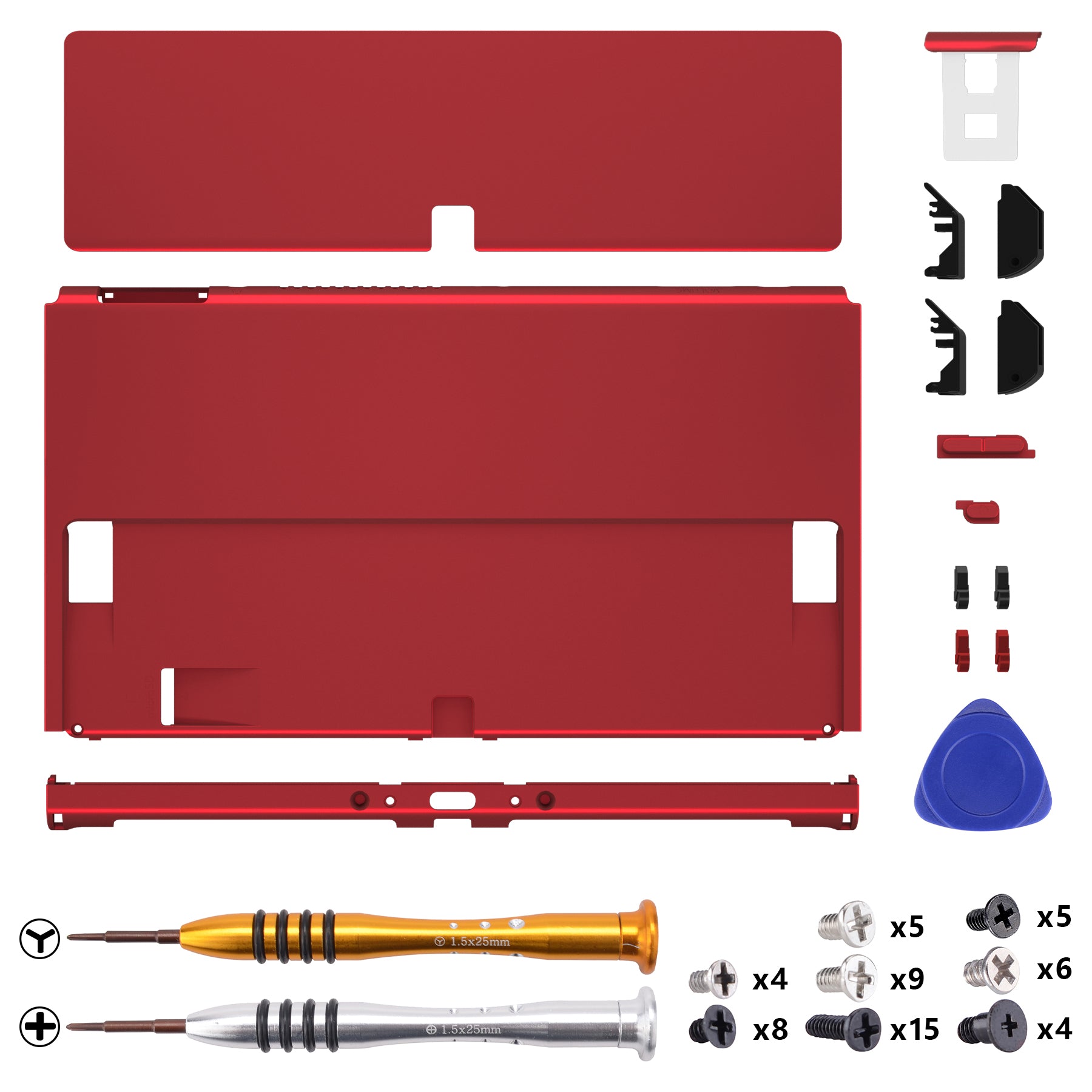 eXtremeRate Replacement Back Plate with Metal Kickstand for Nintendo Switch OLED - Scarlet Red