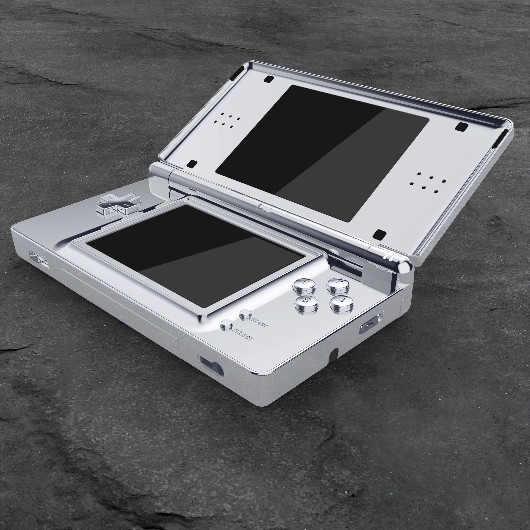 eXtremeRate Replacement Full Housing Shell & Buttons with Screen Lens for Nintendo DS Lite NDSL - Chrome Silver