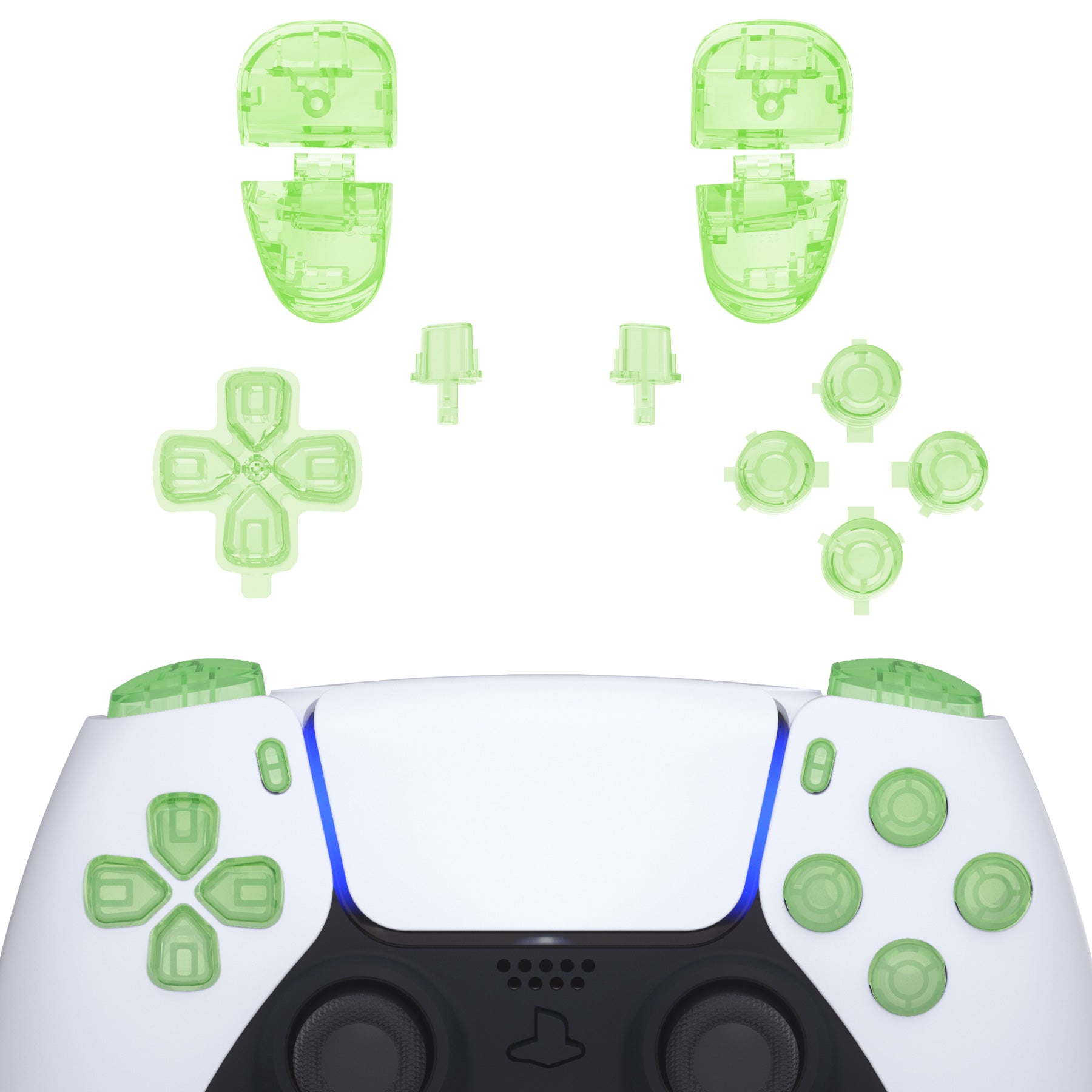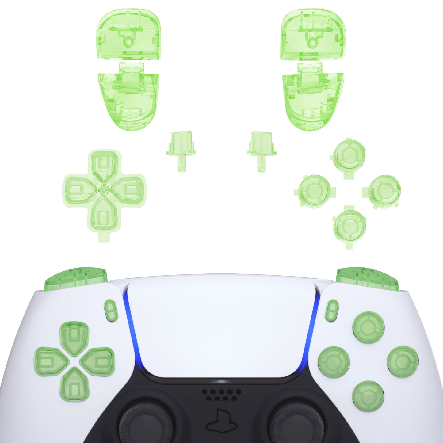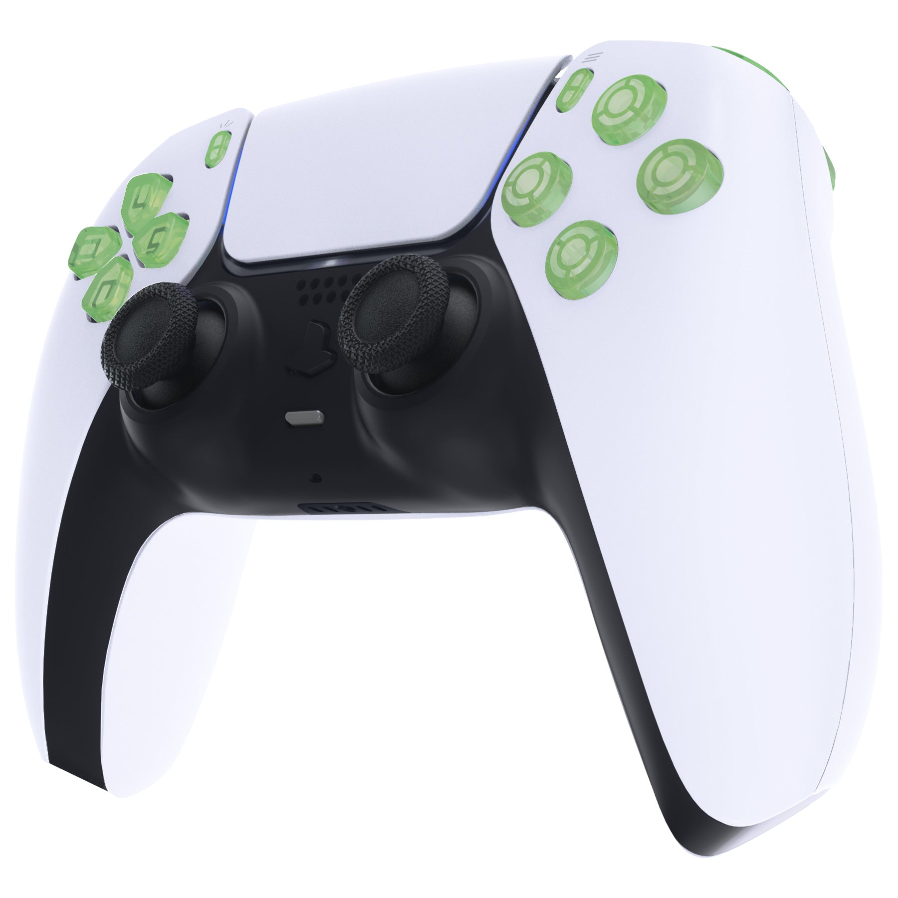 eXtremeRate Replacement Full Set Buttons Compatible with PS5 Controller BDM-030/040/050 - Clear Light Green