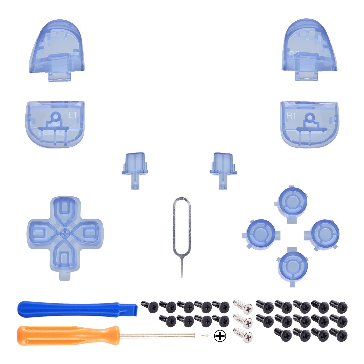 eXtremeRate Replacement Full Set Buttons Compatible with PS5 Controller BDM-030/040/050 - Crystal Clear Light Blue