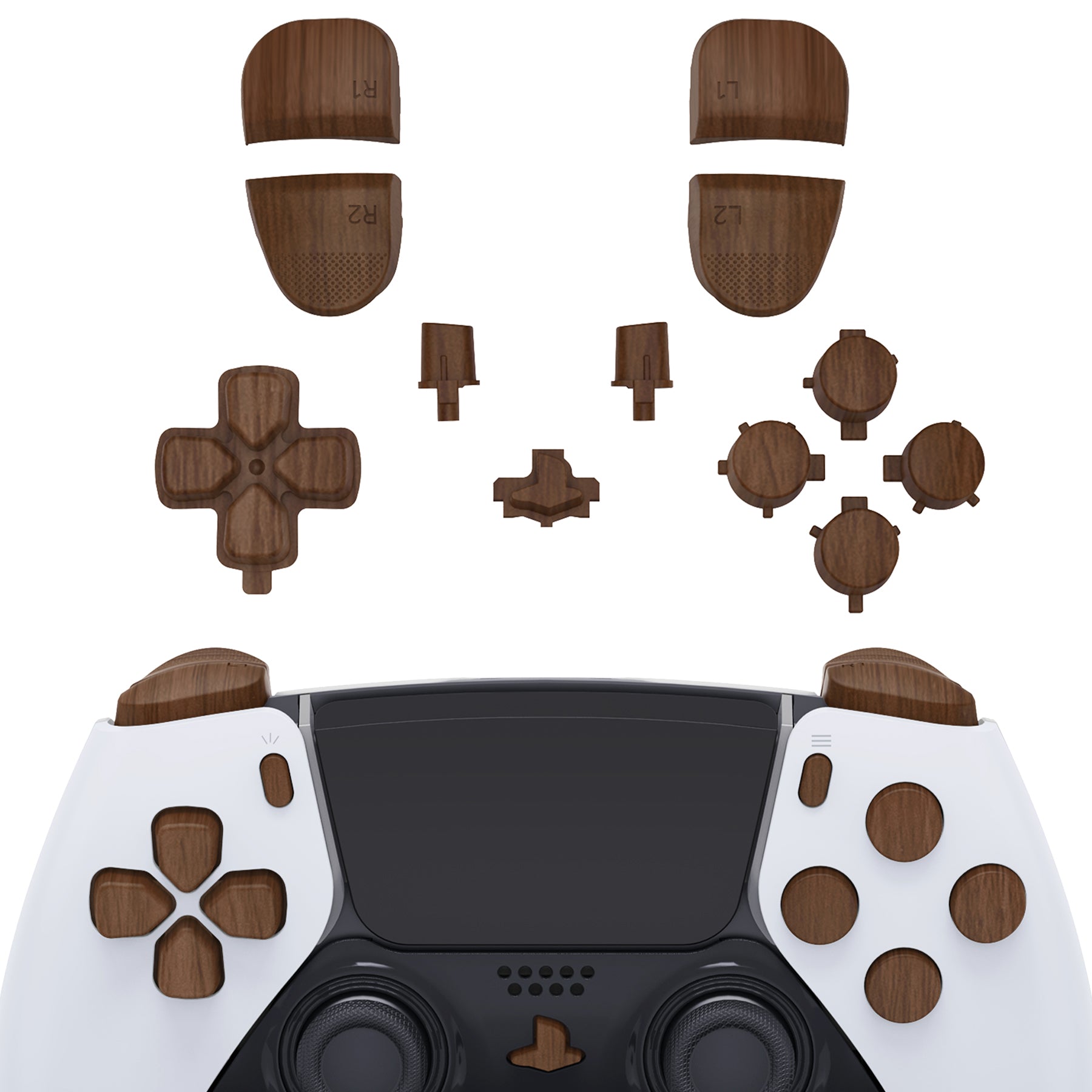 eXtremeRate Replacement Full Set Buttons Compatible with PS5 Edge Controller - Wood Grain