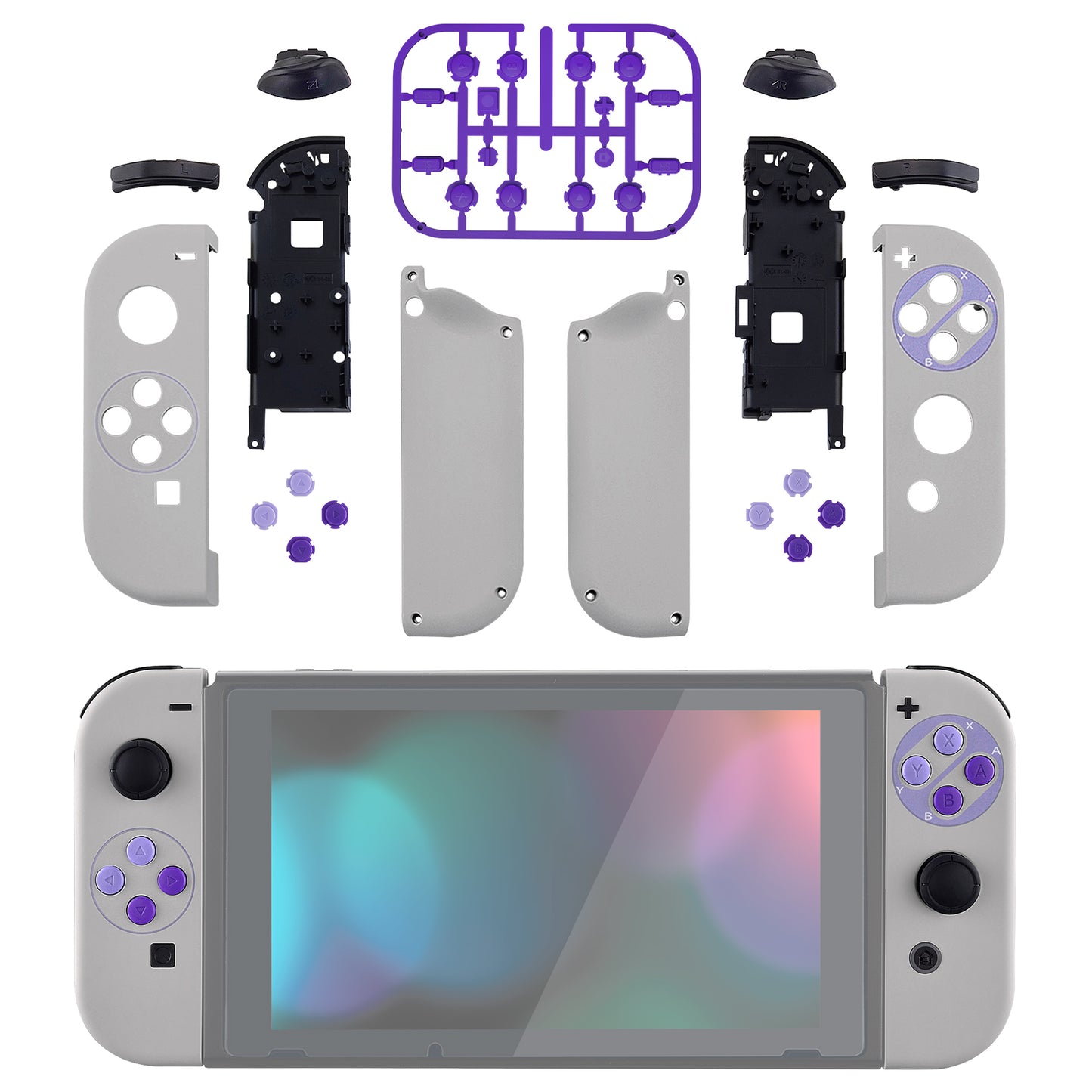 eXtremeRate Replacement Full Set Shell Case with Buttons for Joycon of NS Switch - Classics SNES Style