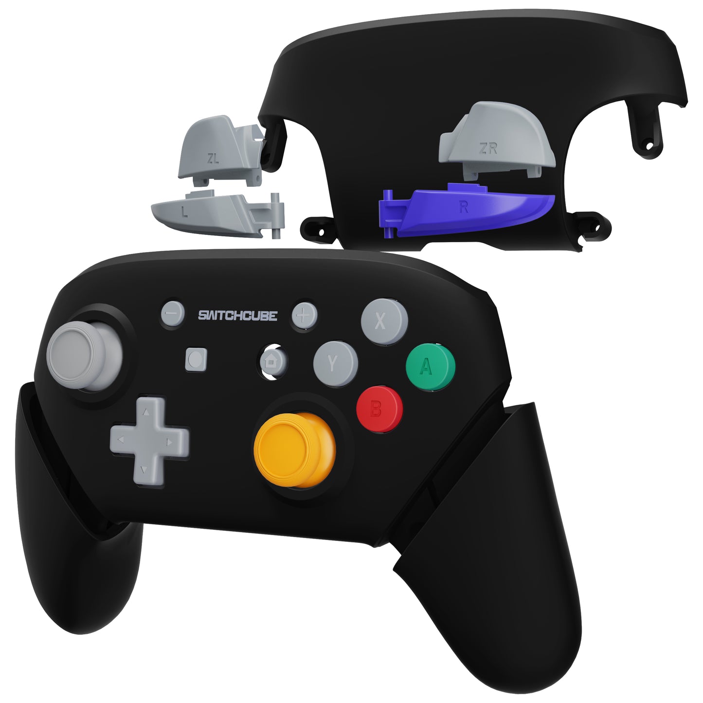 eXtremeRate Replacement Full Set Shell Faceplate Backplate Handles for Nintendo Switch Pro - Classic SwitchCube Style - Black