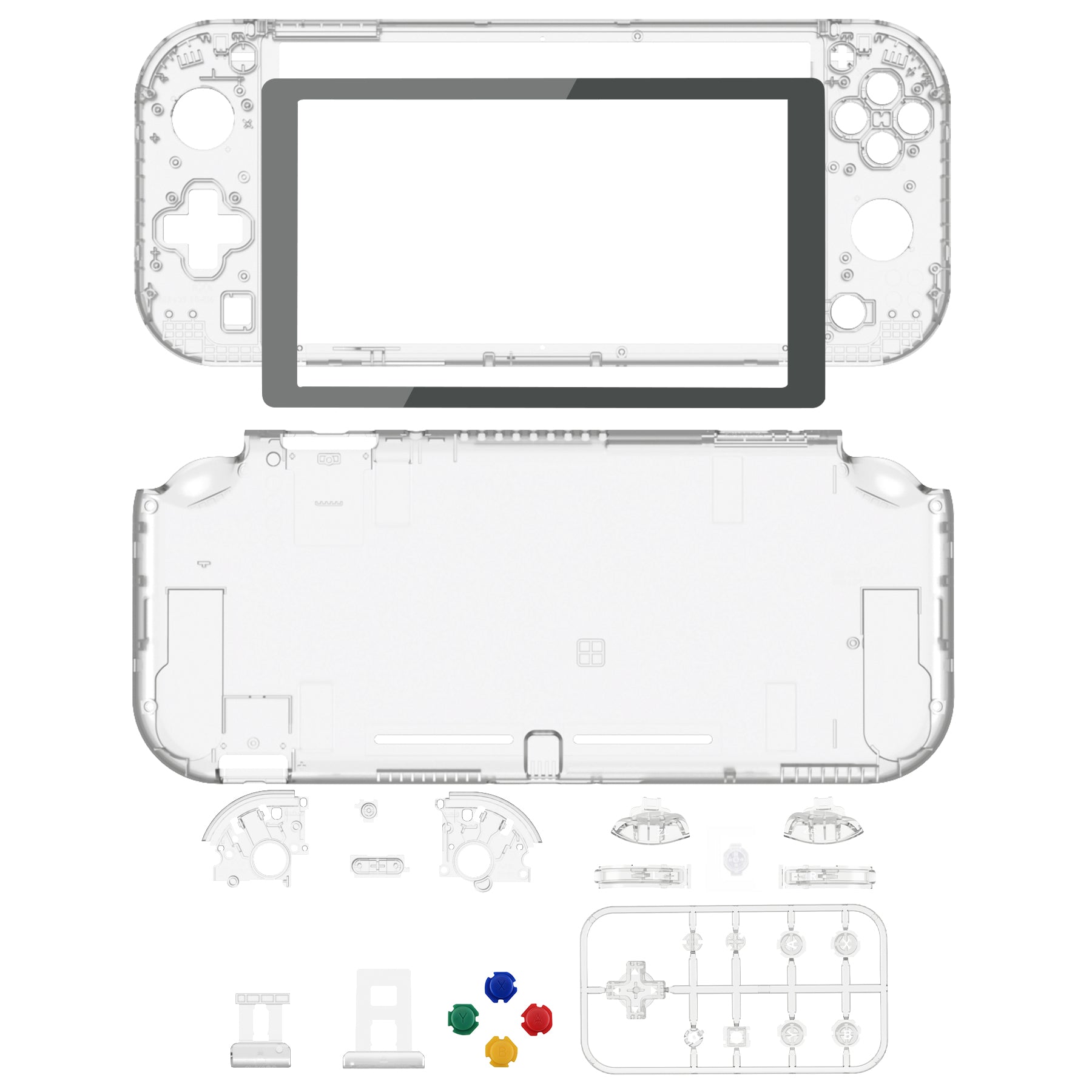 eXtremeRate Replacement Full Set Shells with Button Kit & Screen Protector for Nintendo Switch Lite - Crystal Clear