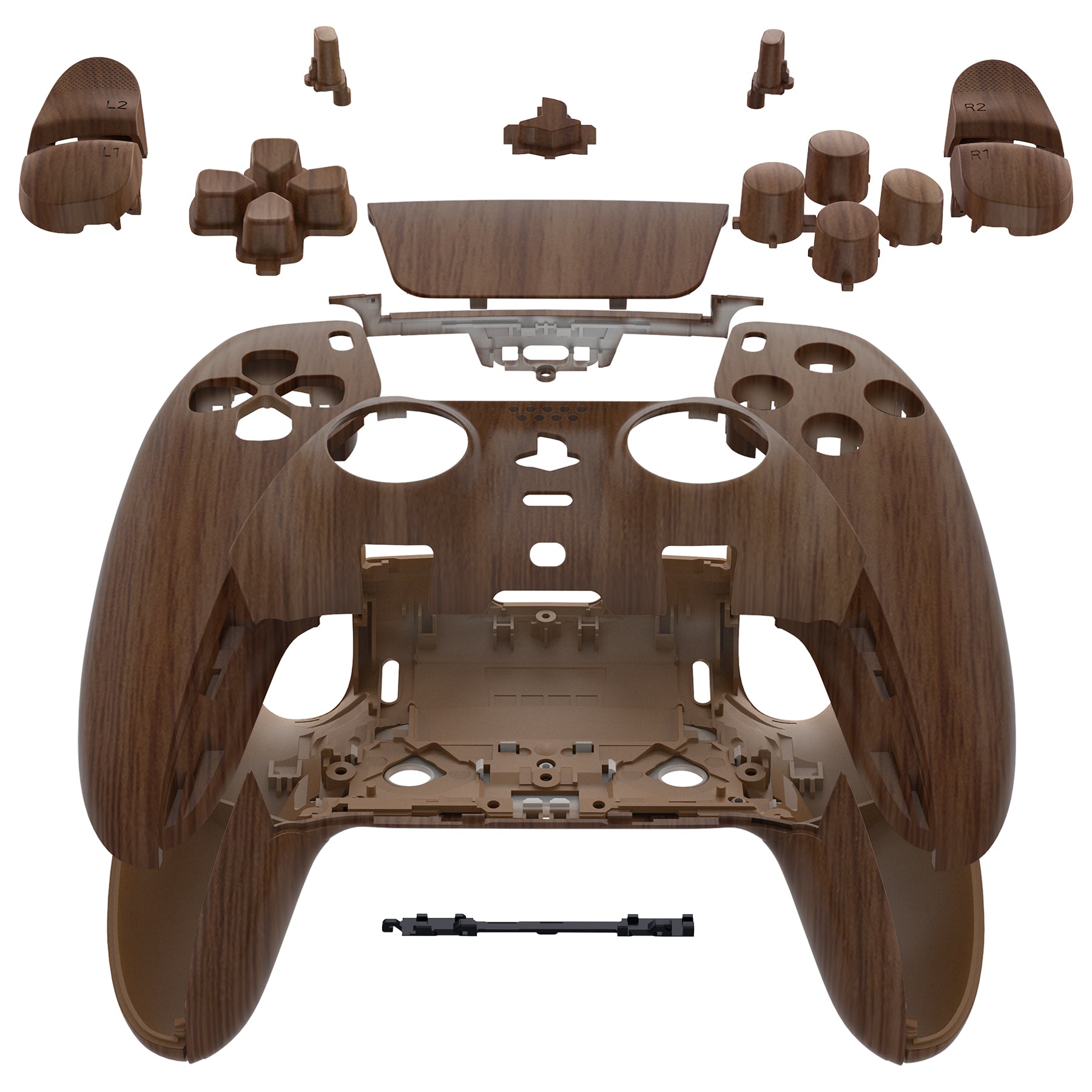eXtremeRate Replacement Full Set Shells with Buttons Compatible with PS5 Edge Controller - Wood Grain