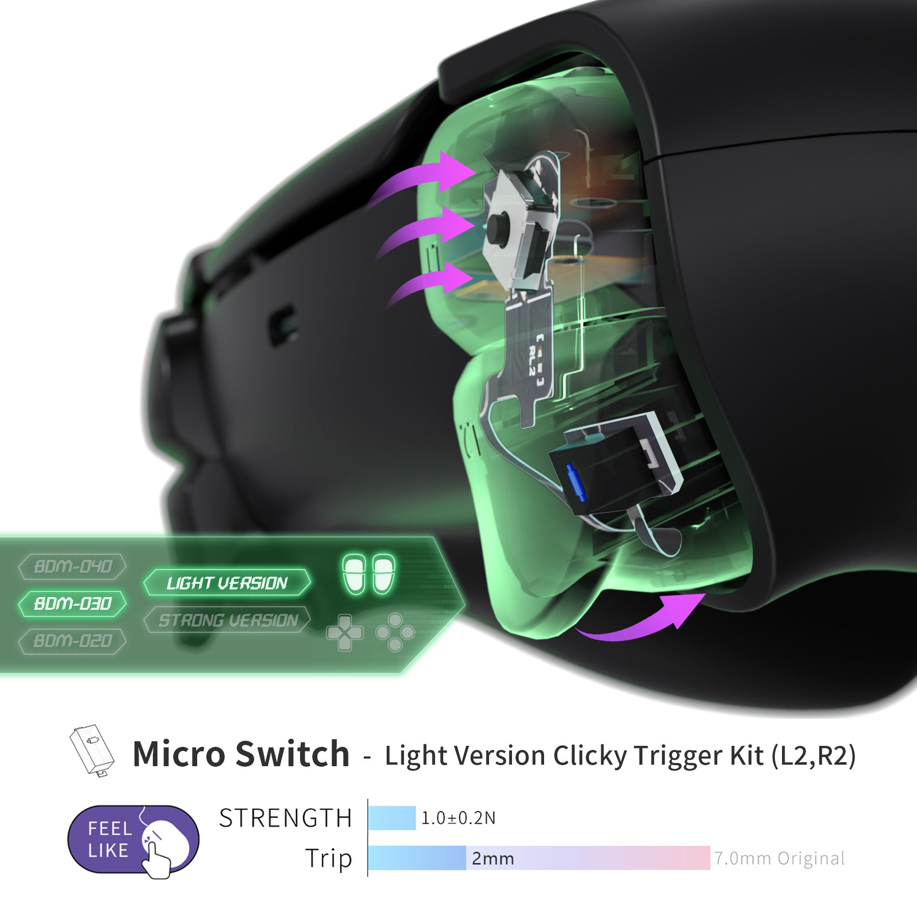 1. The Micro Switch - Light Version Tactile Clicky trigger kit can greatly improve the function of these shoulder buttons for PS5 controller.