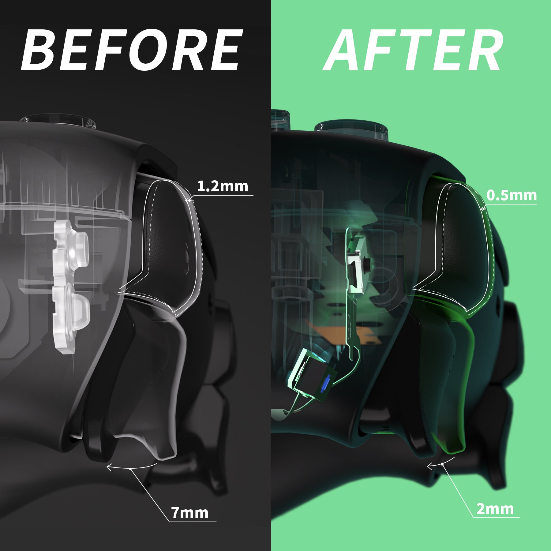 4. Just press down 0.5mm, and the function of L1R1 can be triggered, saving 1 times the distance.