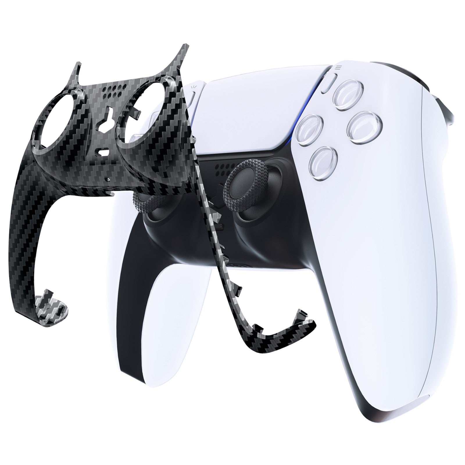 eXtremeRate Replacement Decorative Trim Shell with Accent Rings Compatible with PS5 Controller BDM-010/020/030/040/050 - Graphite Carbon Fiber