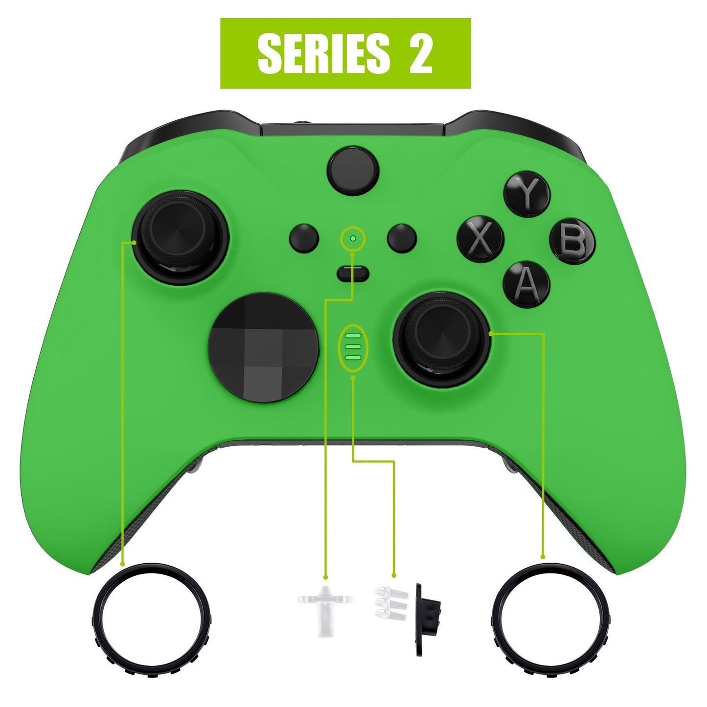 eXtremeRate Replacement Front Housing Shell Case with Accent Rings for Xbox One Elite Series 2 & Elite 2 Core Controller (Model 1797) - Green