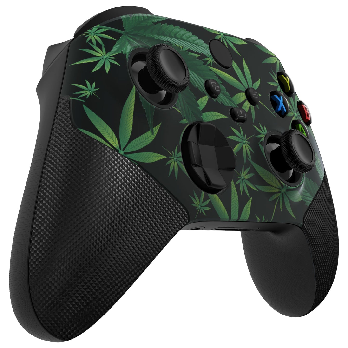eXtremeRate ASR Version Performance Rubberized Grip Front Housing Shell with Accent Rings for Xbox Series X & S Controller - Green Weeds
