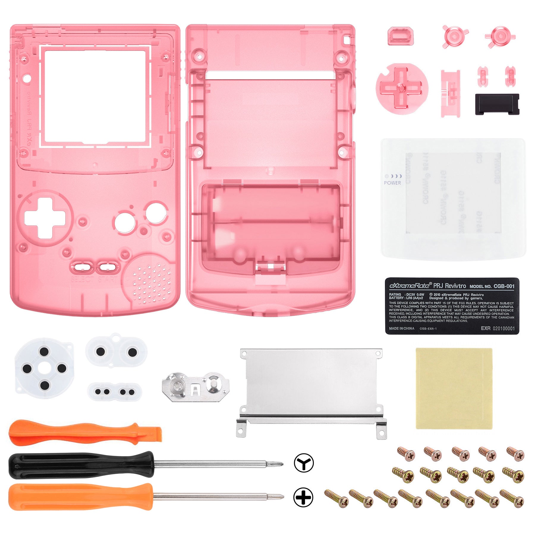 eXtremeRate IPS Ready Upgraded GBC Replacement Full Set Shells with Buttons & White Screen Lens for Gameboy Color, Compatible with GBC OSD IPS & Regular IPS & Standard LCD - Cherry Pink