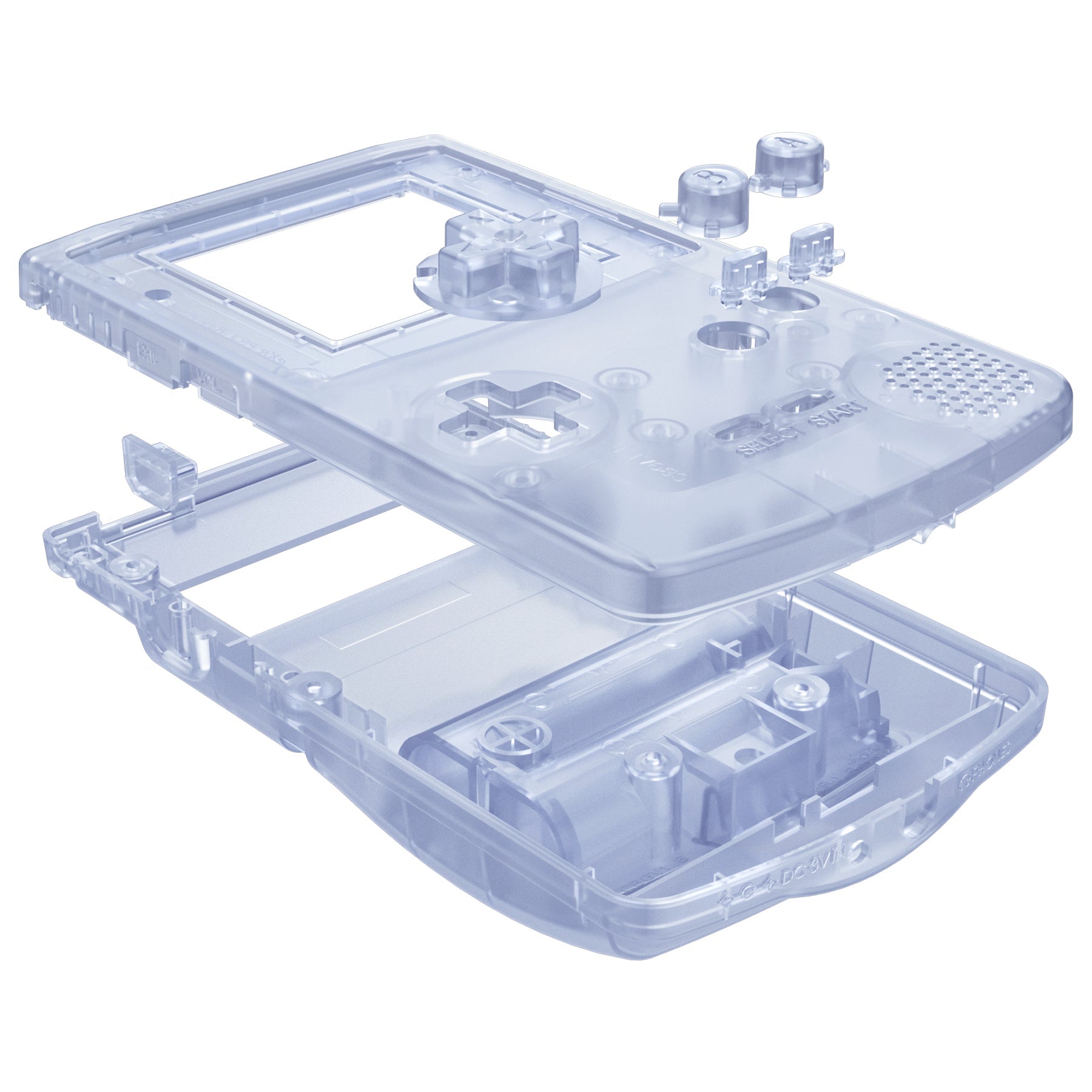 eXtremeRate IPS Ready Upgraded GBC Replacement Full Set Shells with Buttons & White Screen Lens for Gameboy Color, Compatible with GBC OSD IPS & Regular IPS & Standard LCD - Clear Glacier Blue