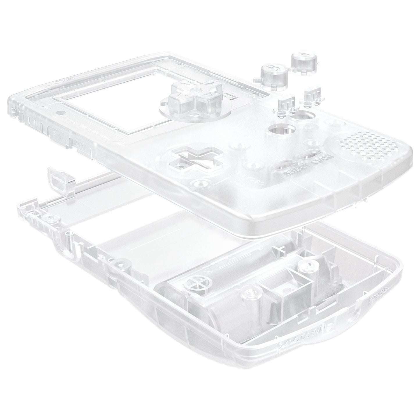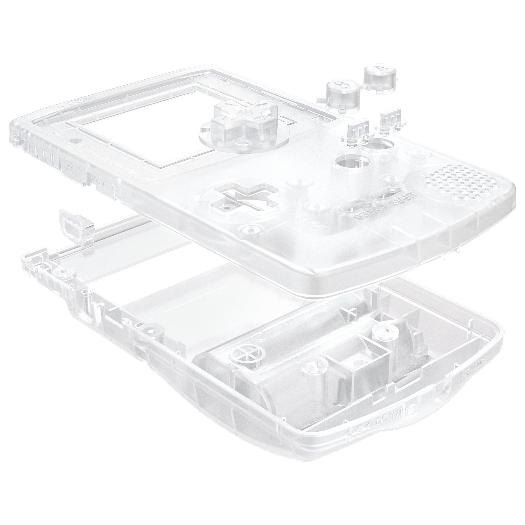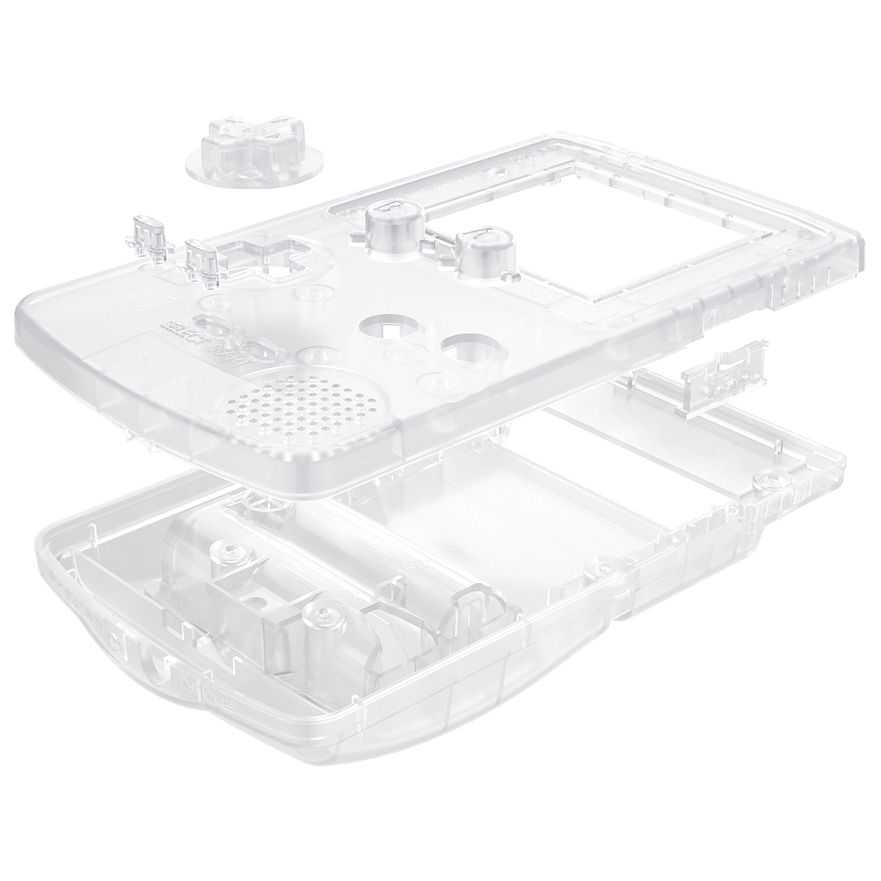 eXtremeRate IPS Ready Upgraded GBC Replacement Full Set Shells with Buttons for Gameboy Color, Compatible with GBC OSD IPS & Regular IPS & Standard LCD - Transparent Clear