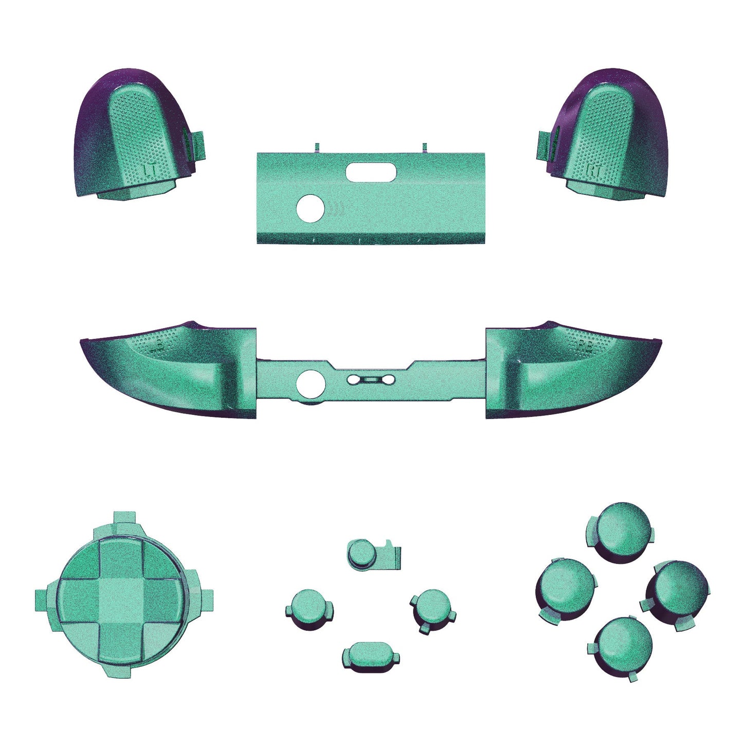 eXtremeRate No Letter Imprint Replacement Full Set Buttons for Xbox Series X & S Controller - Chameleon Green Purple