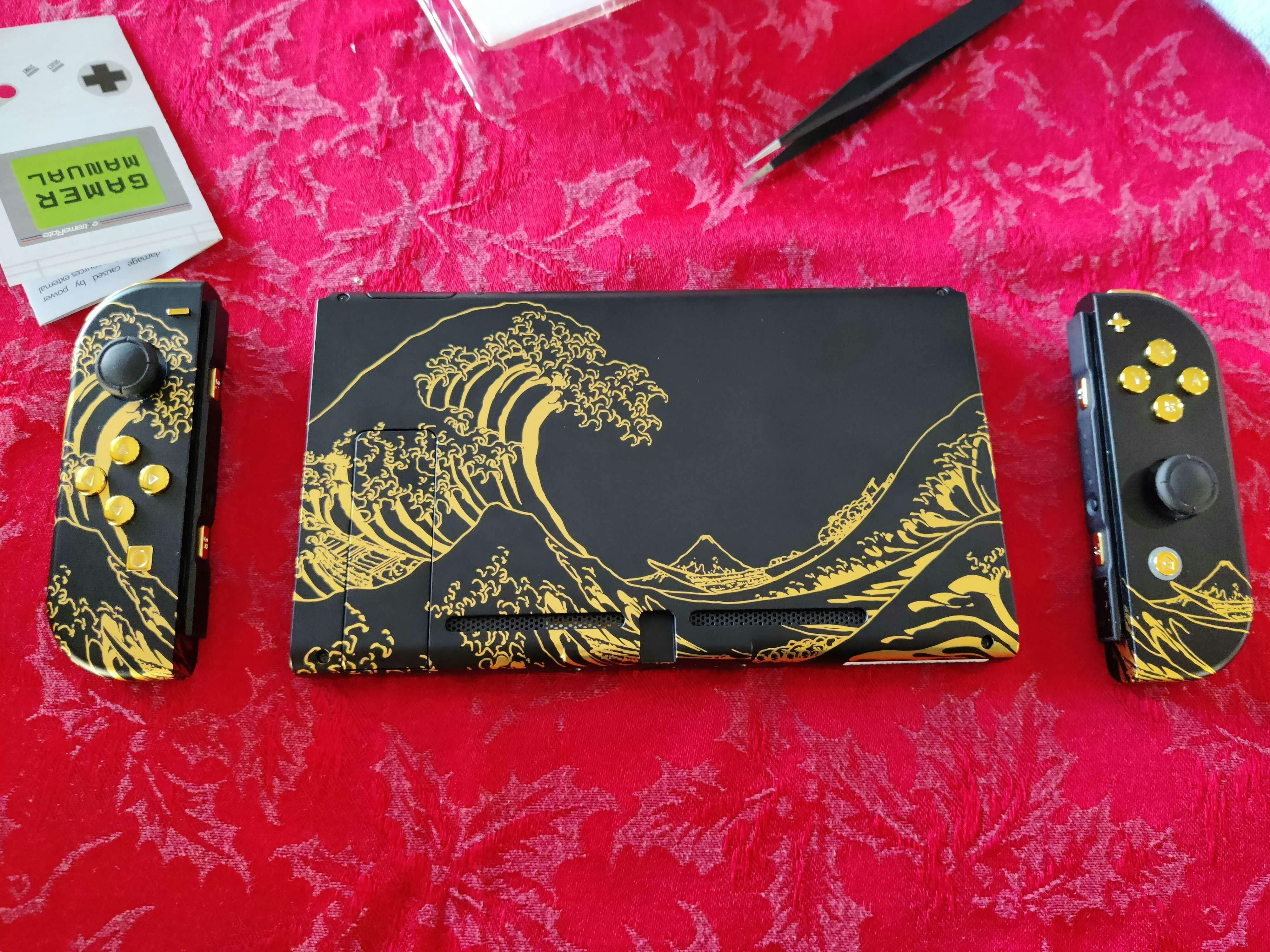 eXtremeRate Replacement Full Set Shells with Buttons for Nintendo Switch - The Great GOLDEN Wave Off Kanagawa - Black