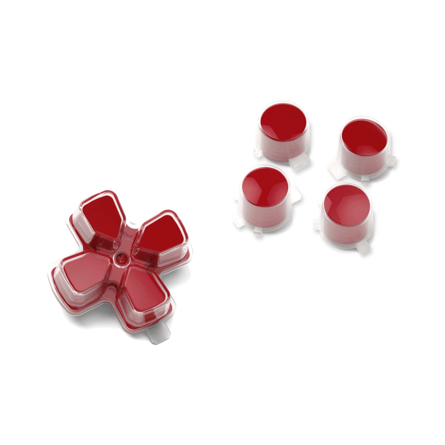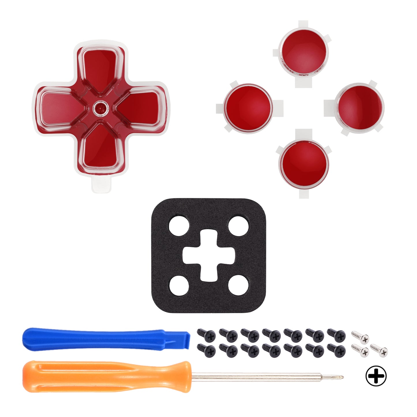 eXtremeRate Replacement No Letter Imprint Two-Tone Dpad Action Buttons for PS5 Controller - Carmine Red & Clear