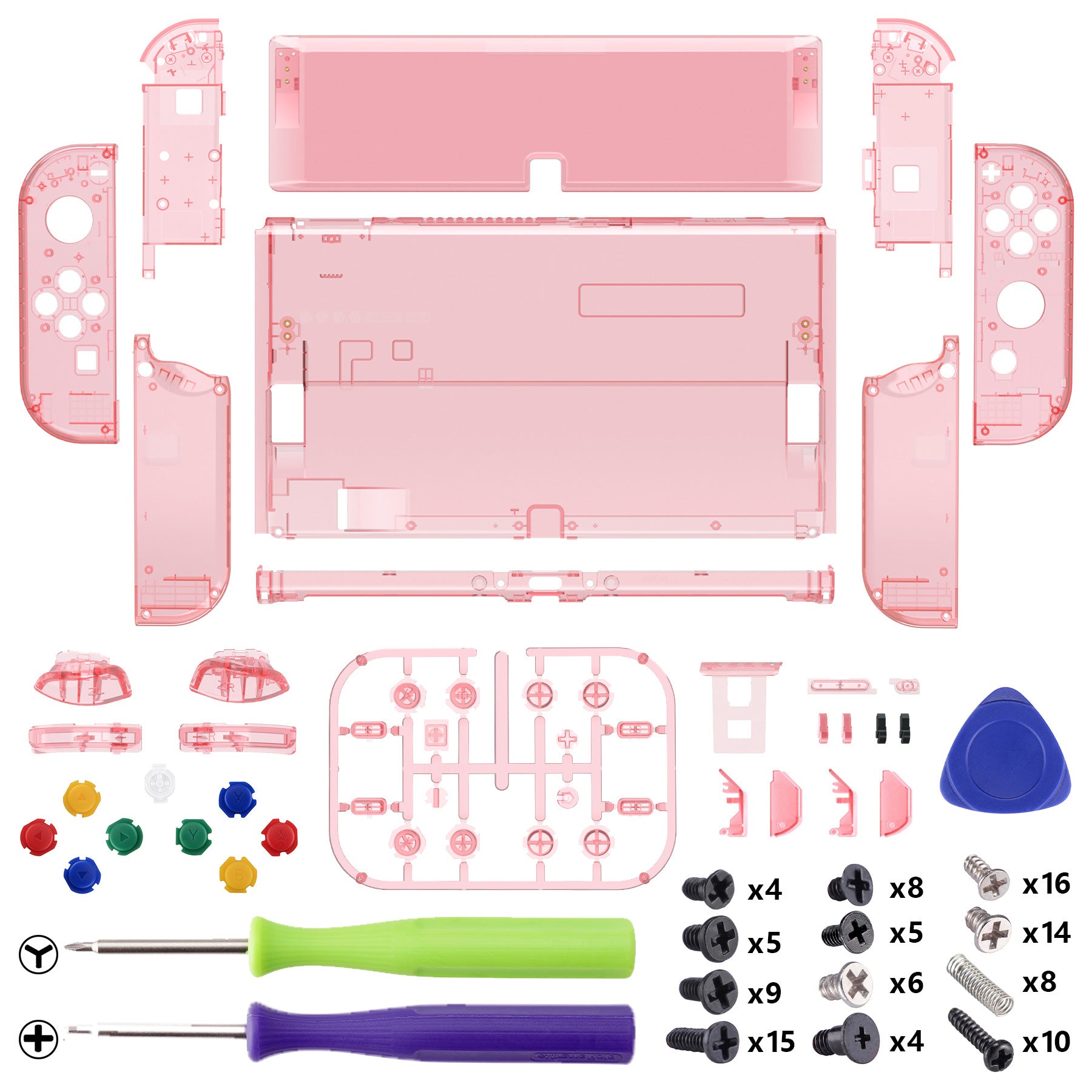 2. Please don't wrongly think they are Switch console and Joycons. Actually, they are full housing shells with full set buttons and extra colorful buttons for Nintendo Switch OLED without any electronic parts. The console, Joycon and other parts are not included.