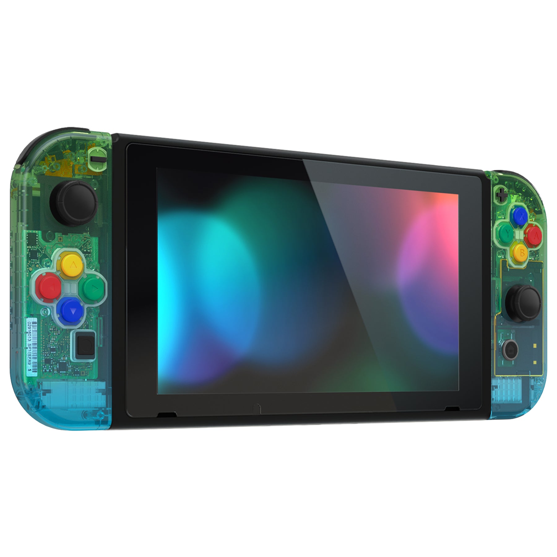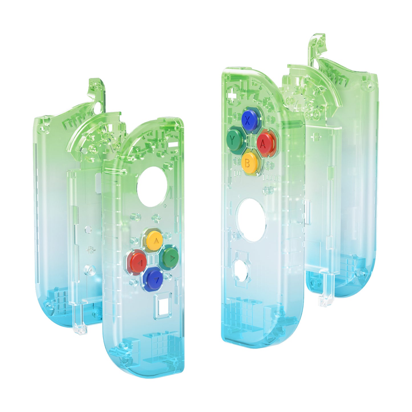 eXtremeRate Replacement Full Set Shell Case with Buttons for Joycon of NS Switch - Gradient Translucent Green Blue